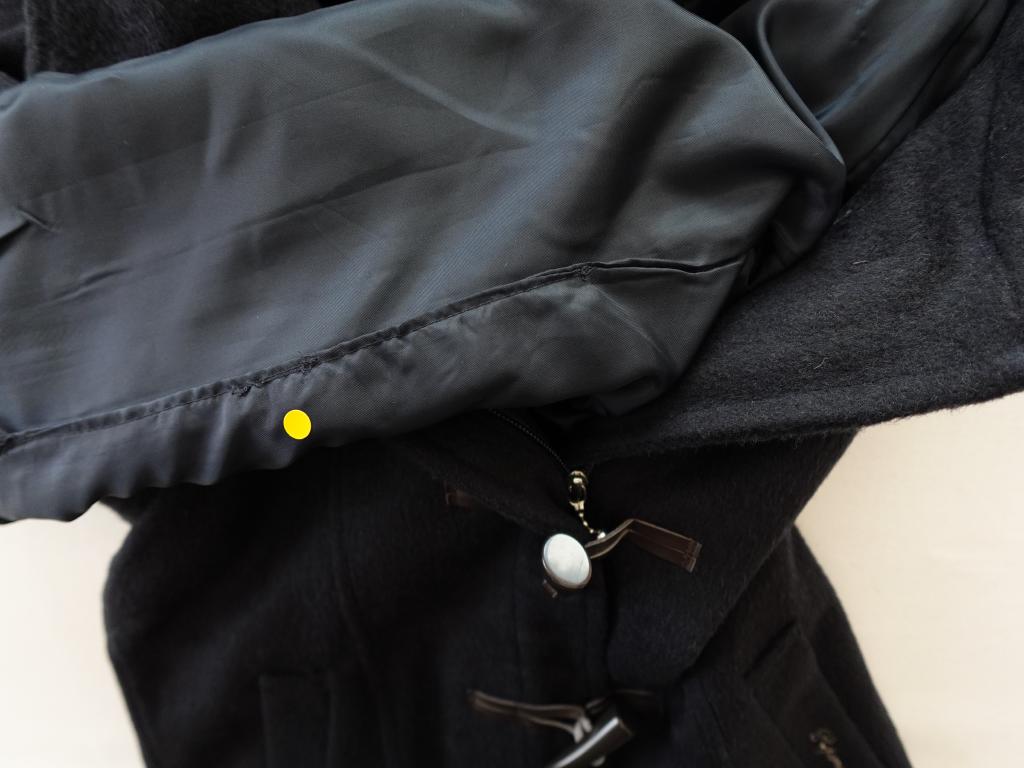 | コメント | 表地:ポリエステル・アクリル・レーヨン・毛・ナイロン 裏地:ポリエステル ループ部分:合成皮革 ロゴの刺しゅう 前ファスナー・トグル・ボタン 前ポケット ピリングほんの少々 左袖裏地に、ステッチ脱落を縫った跡19cm 実寸サイズ:身幅45cm/着丈51cm |