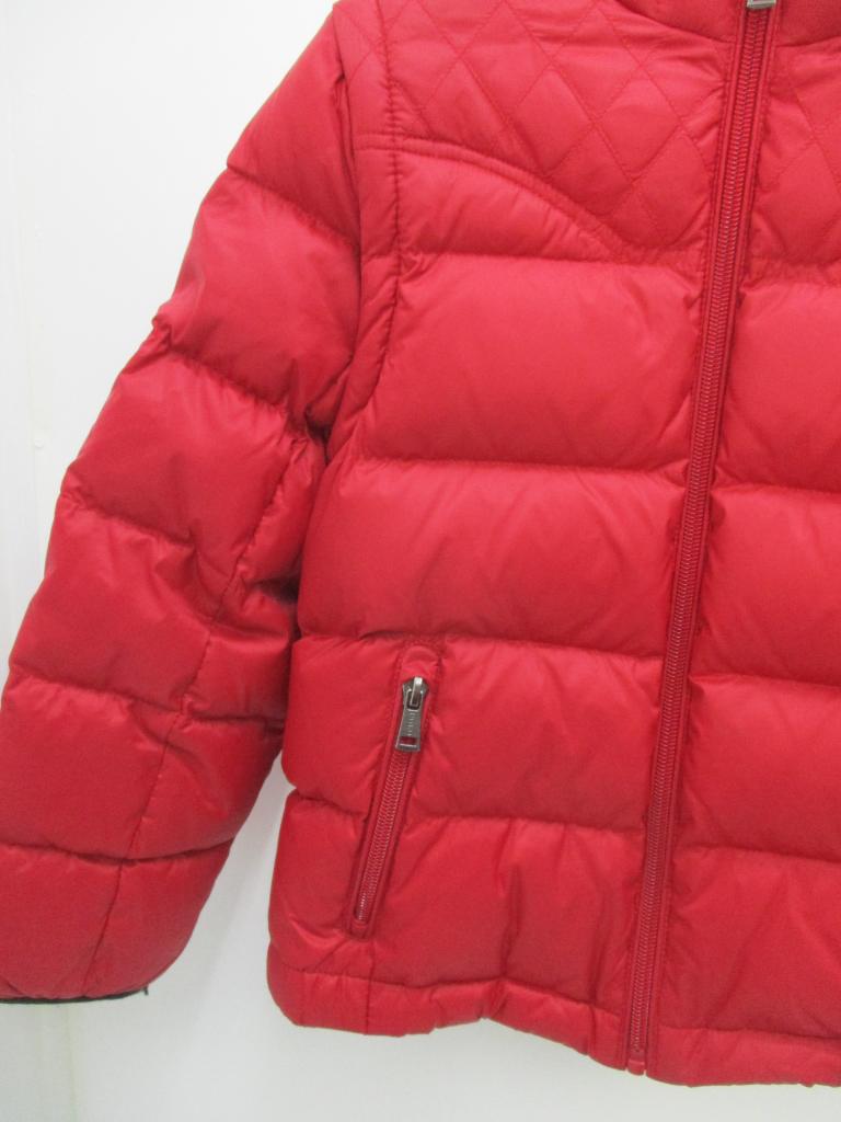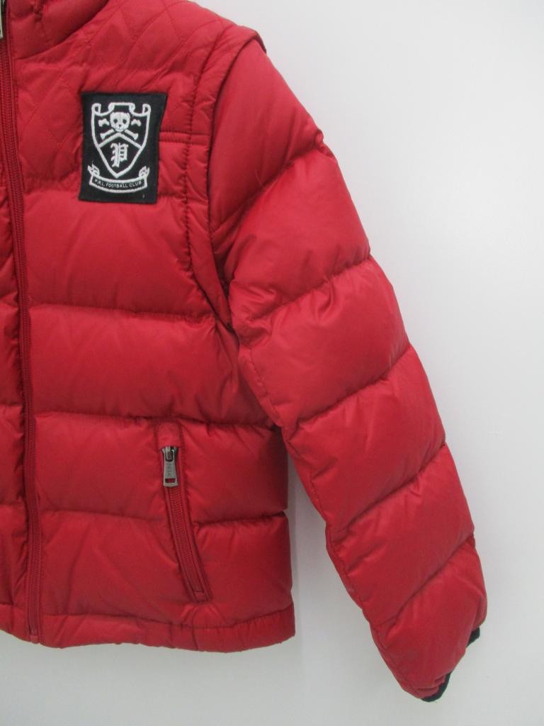 ★ダウンベストとしても着用できます♪ 【材質】表地&裏地ナイロン100/中綿ダウン75 フェザー25 【記載サイズ】7 【生地説明】スベスベした生地 【実寸】身丈46㎝ 身幅36㎝ 肩幅36㎝ 袖丈43,5㎝ 【色、柄】赤 【デザイン、特徴】左胸&後ろにアップリケつき 前ファスナー ポケット前×2 袖はファスナーで脱着できます 【状態】目立った汚れなし 【※クリックポスト発送不可】 |