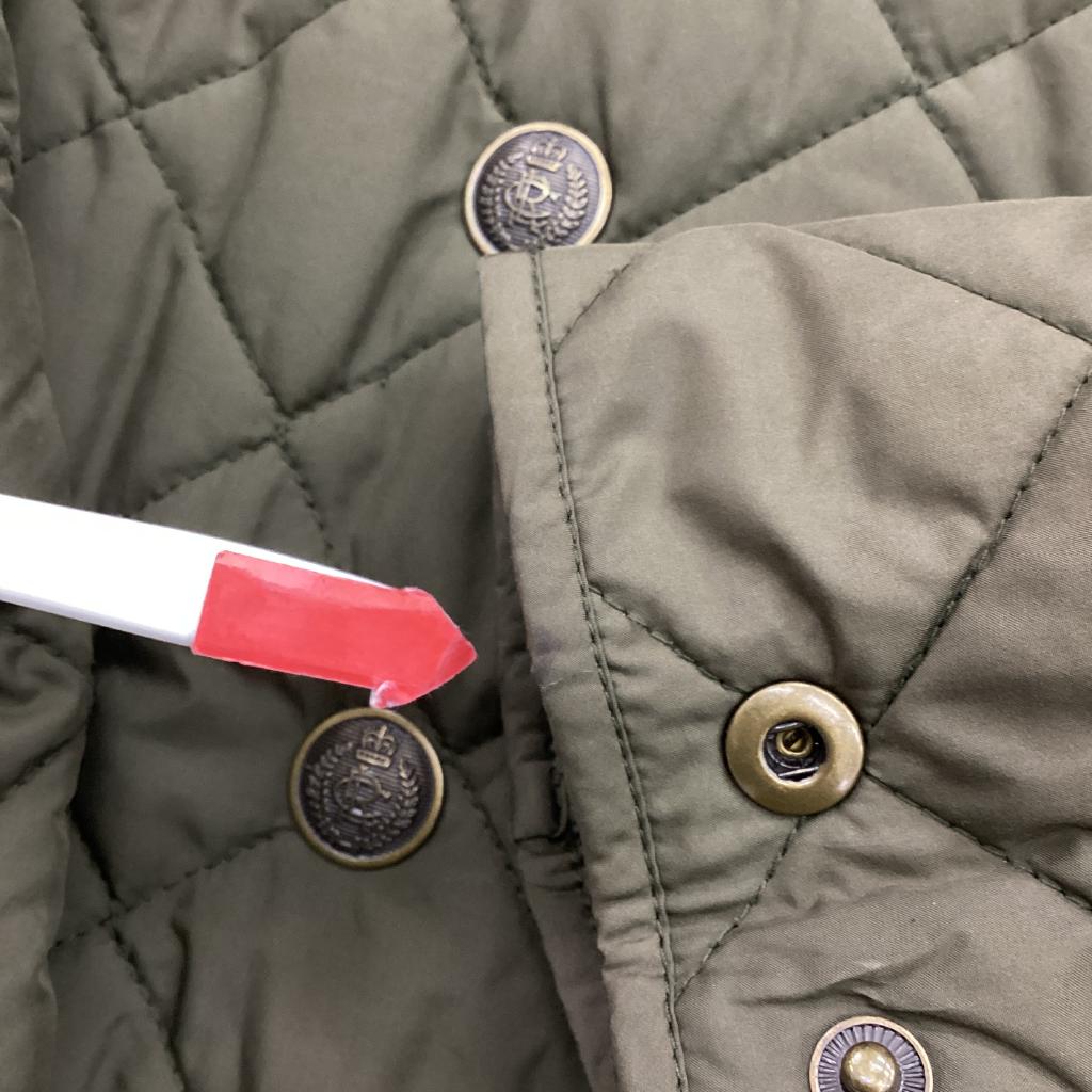 【ランク:2.5】 【サイズ】130cm 【実寸(㎝)】身幅38 袖丈47 肩幅30 丈48 【素材(%)】※タグ参照 【裏地(%)】あり 【色】カーキ系 【デザイン】キルティングダウンジャケット 前ドットボタン 袖口ドットボタン 肩デザイン ポケットあり 【状態】使用感あり(中) 毛羽立ちあり(中) 前後シミあり 刺しゅう糸ほつれあり 袖口汚れあり |