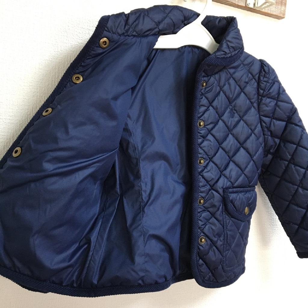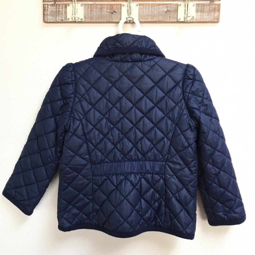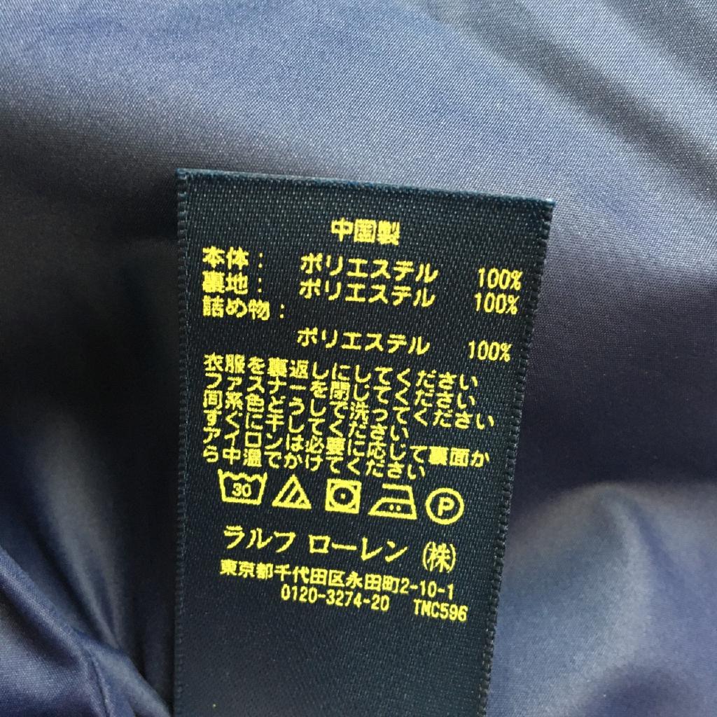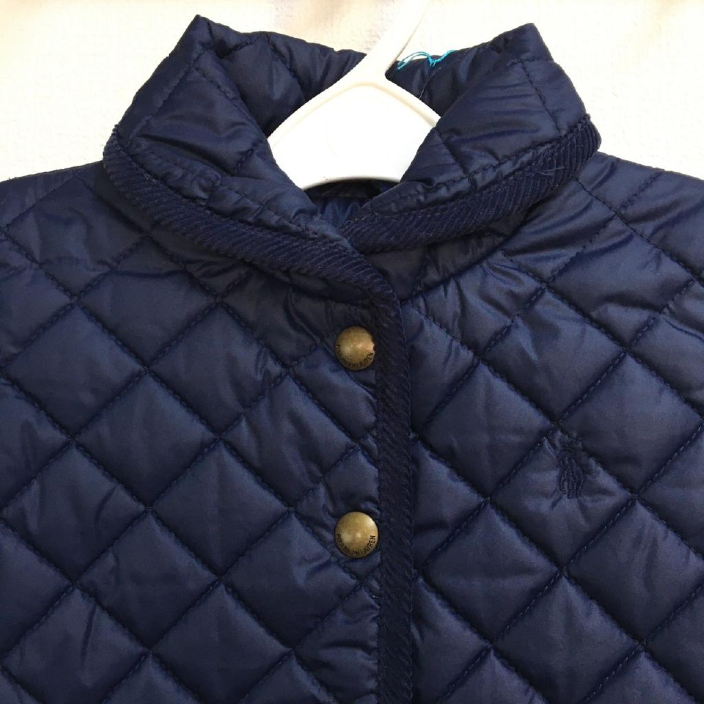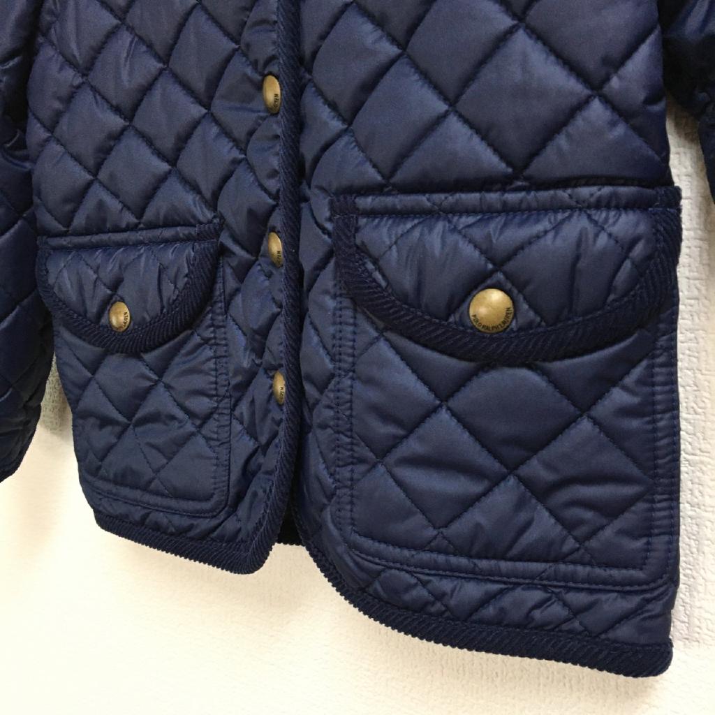 | コメント | ラルフローレン株式会社【サイズ表記】4/4T/110/56【実寸】身幅33 総丈38【材質】中綿:ポリエステル【特徴】ネイビー キルティング 裏地付(ポリエステル) 前スナップ 前ポケット |