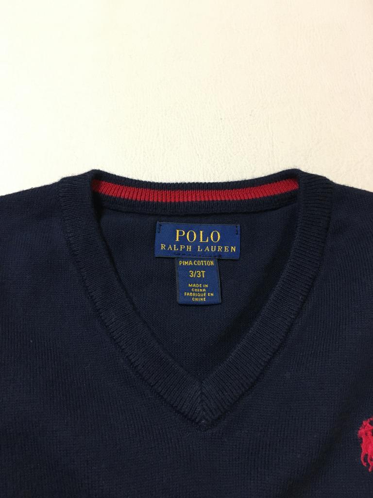 | コメント | 【POLO ラルフローレン社】 表示サイズ:100 紺 全体的に毛羽、色あせ少々 肩~裾37 身幅31 |