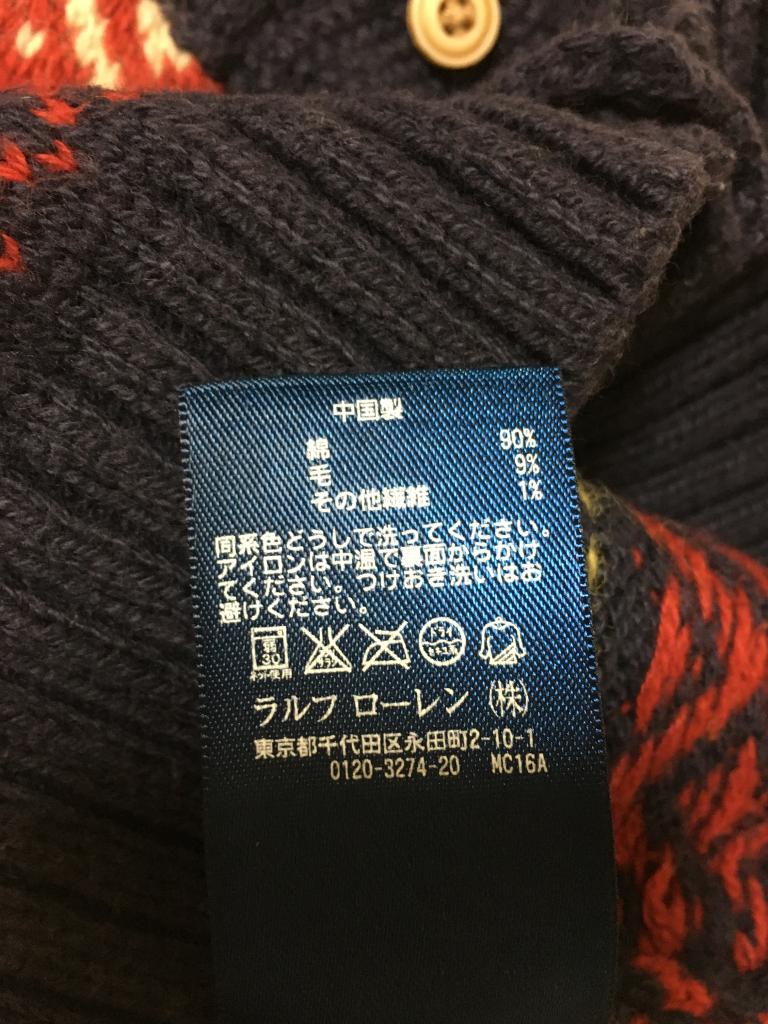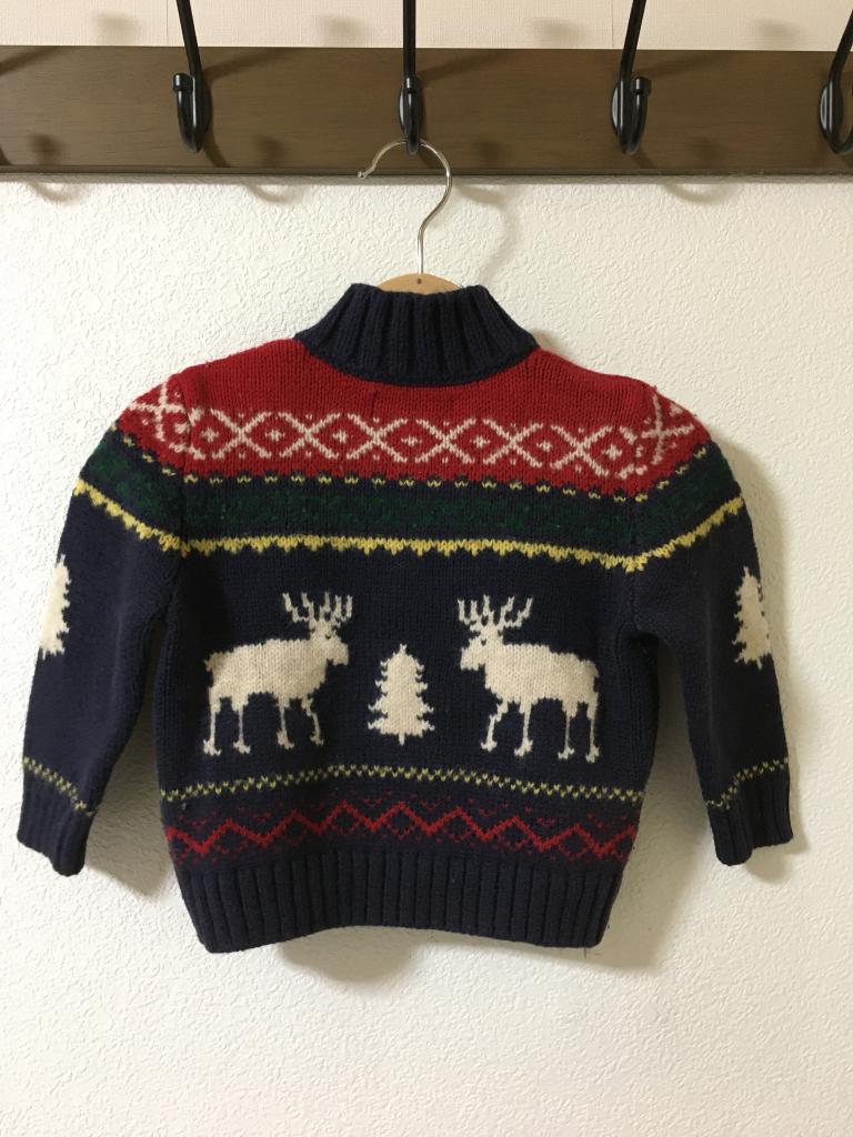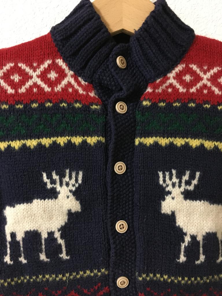 | コメント | 【POLO ラルフローレン社】 表示サイズ:80 紺系柄 前全開ボタン 全体的に毛羽、毛玉少々 着丈28 身幅29 |