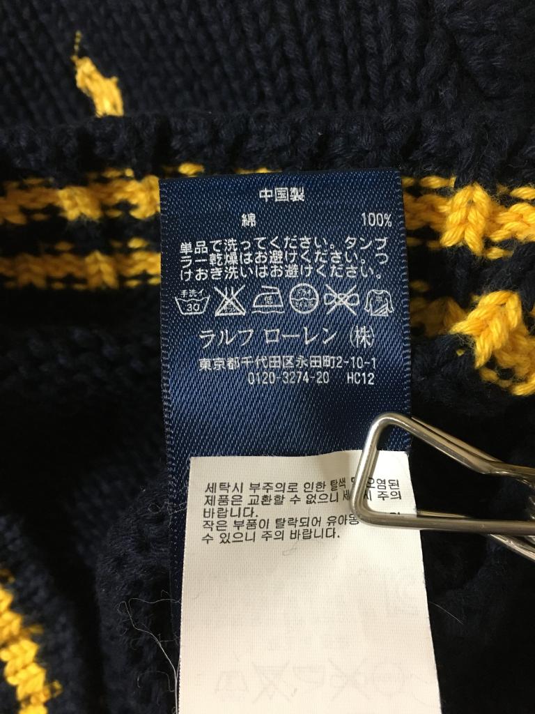 | コメント | 【POLO ラルフローレン社】 表示サイズ:90 紺 全体的に毛羽少々 着丈31 身幅31 |