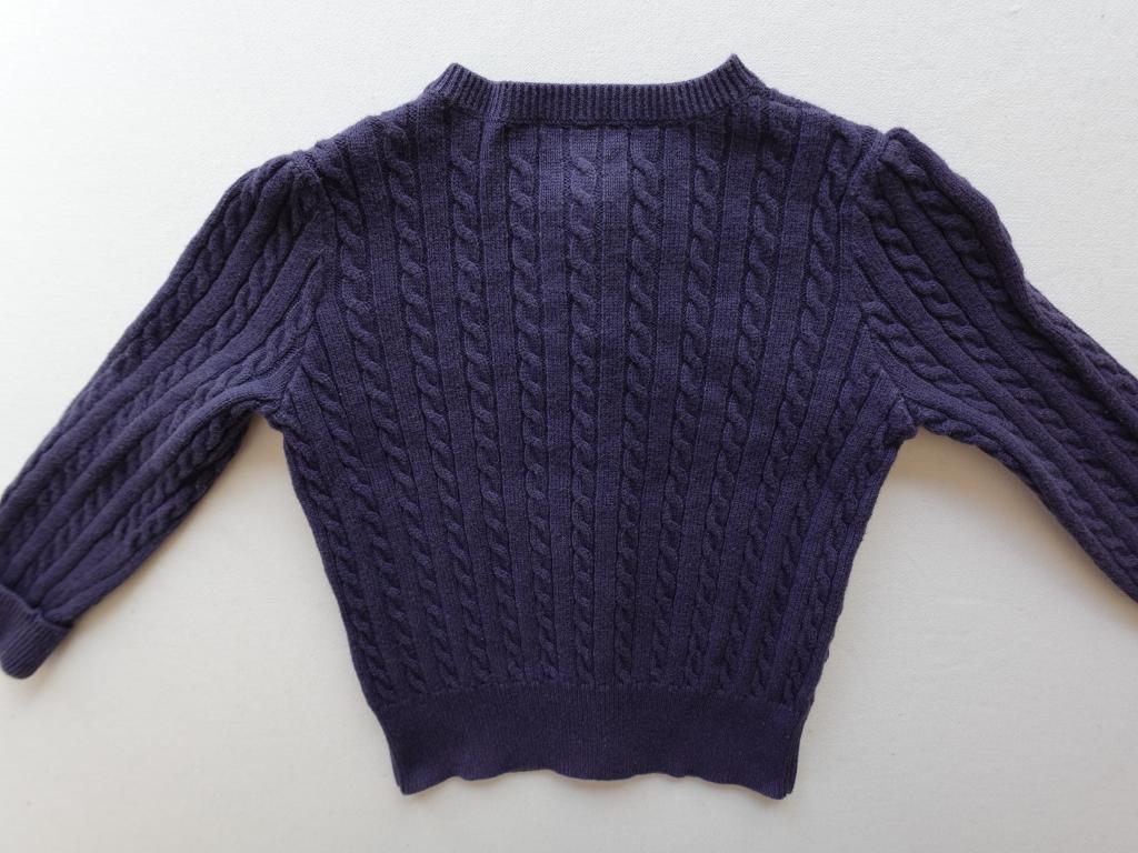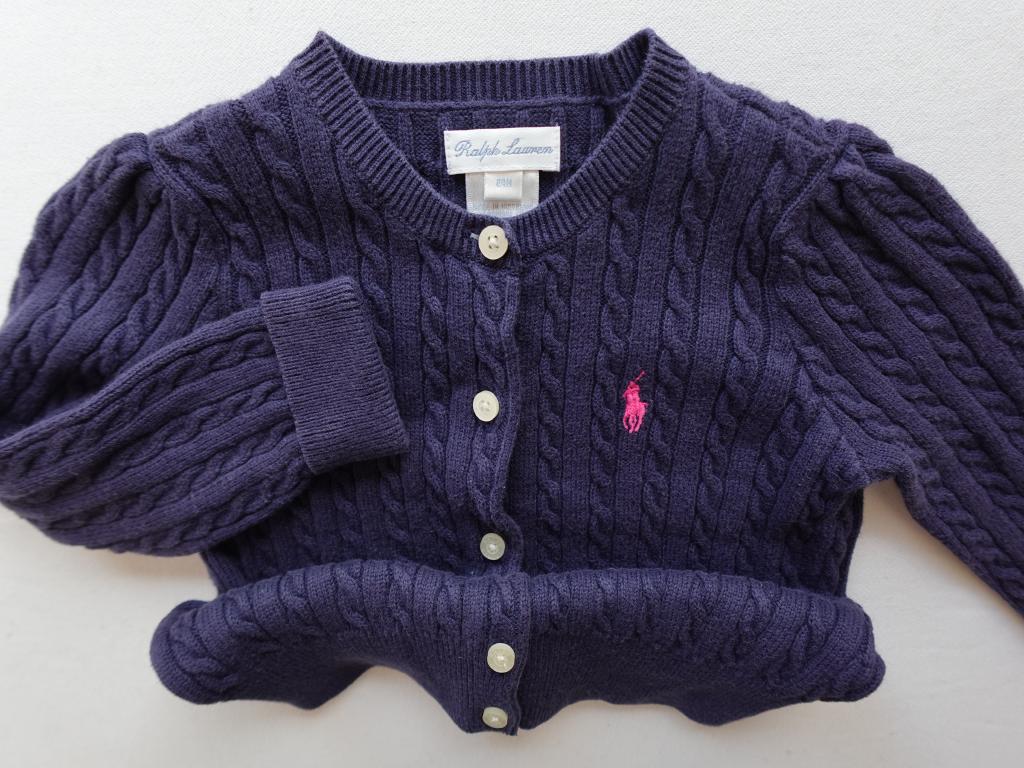 | コメント | 【海外物】 表示サイズ:24M ニット ロゴマークの刺しゅう 前ボタン 色あせ少々 毛羽立ちやや大 実寸サイズ:身幅28cm/着丈31cm |