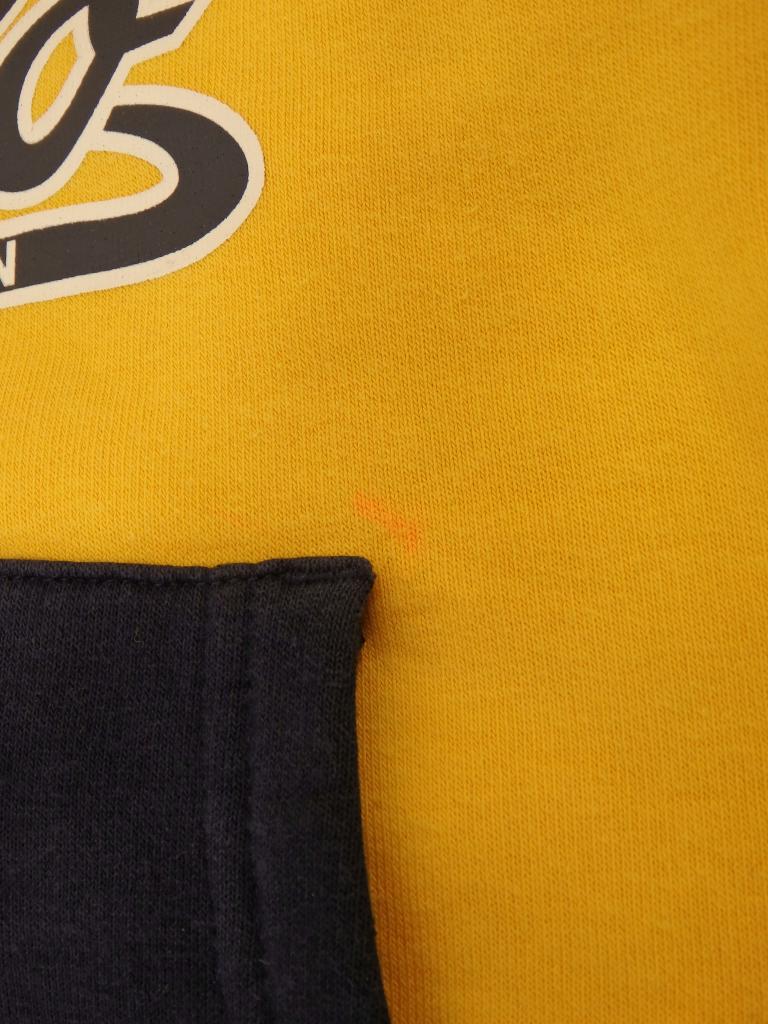 【サイズ表記】3/3T 【材質】リブ部分:綿・ポリウレタン、フード裏地:綿 【実寸サイズ】肩幅30身幅34袖丈34着丈34 【デザイン】山吹色×ネイビー フード付きトレーナー トレーナー地 裏地:起毛 ラルフローレン(同) 前ポケット 【状態】左前下にオレンジ色汚れ約1㎝、5㎜ 薄黒汚れ、薄青汚れ、薄汚れ、水シミなど全体にあり 色あせ中くらい、着用感・毛羽立ちやや大 洗濯タグ切り取りあり |