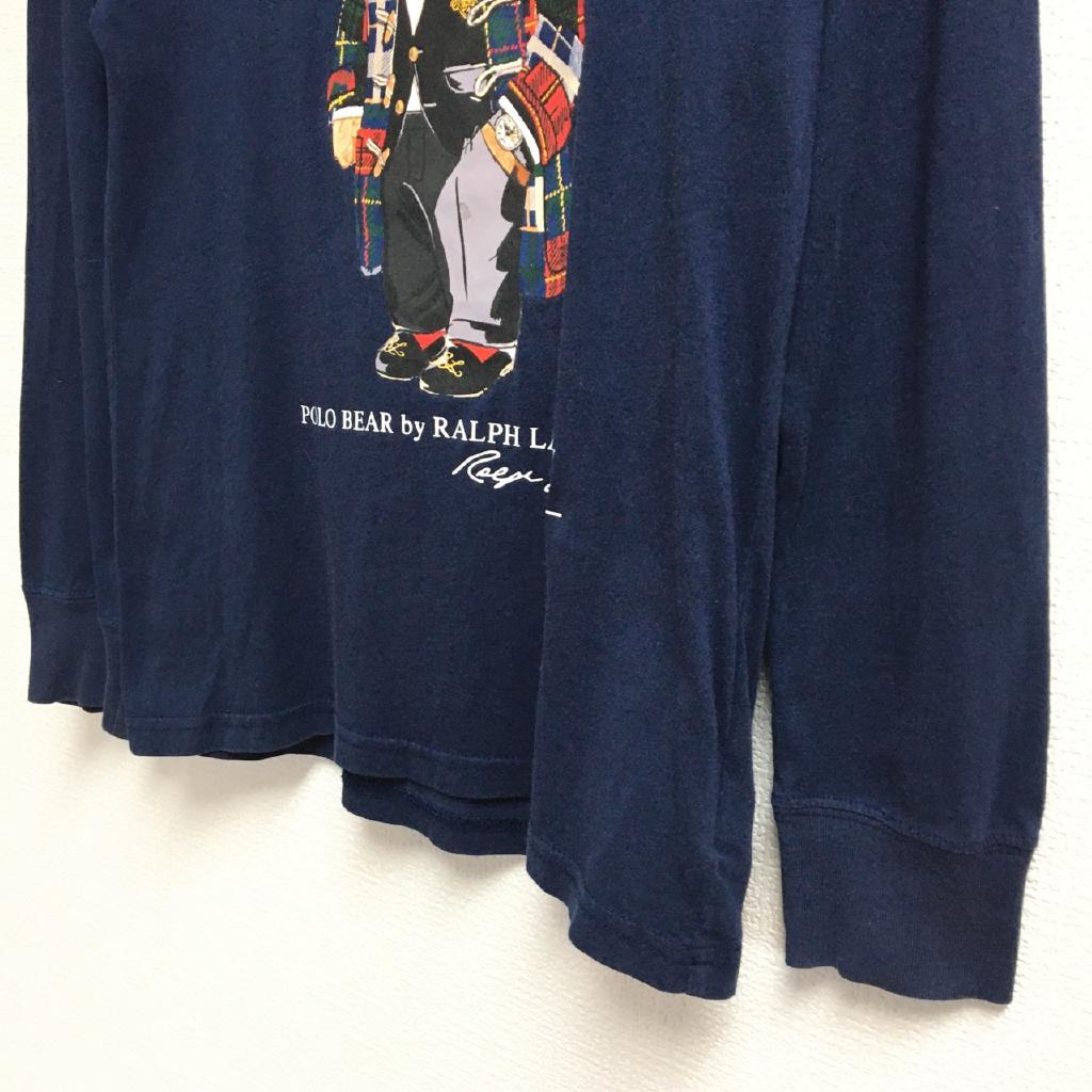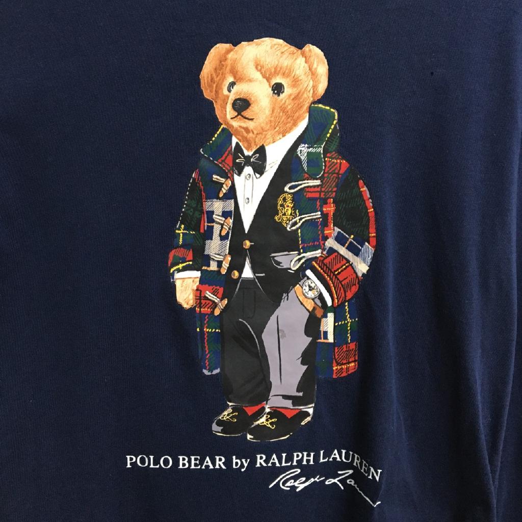 ★人気のベアシリーズ★ ラルフローレン株式会社【実寸】身幅36 総丈52【特徴】ネイビー ロゴプリント キャラクタープリント【状態】色あせ、毛羽立ち少々 左胸に小さい穴があいています |