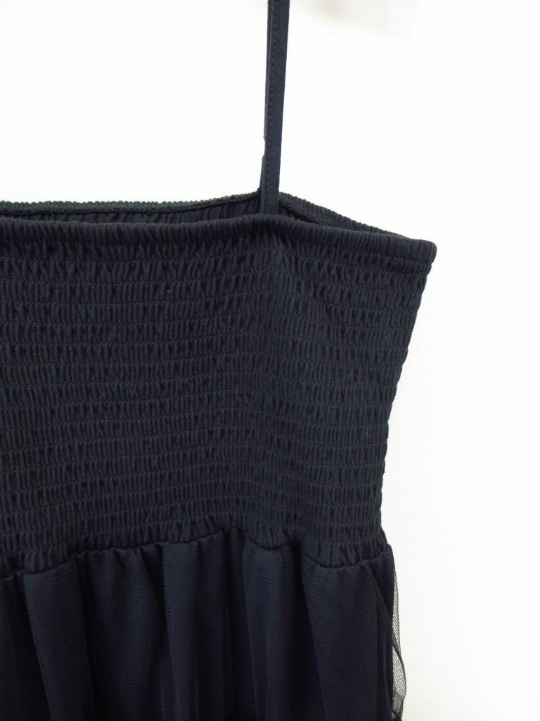 「チューブトップキャミソールワンピース」 【サイズ表記】M 【材質】写真参照 【実寸サイズ】身幅60脇下59 【デザイン】黒 胸元シャーリング 切り替えでチュールスカート 裏地あり |