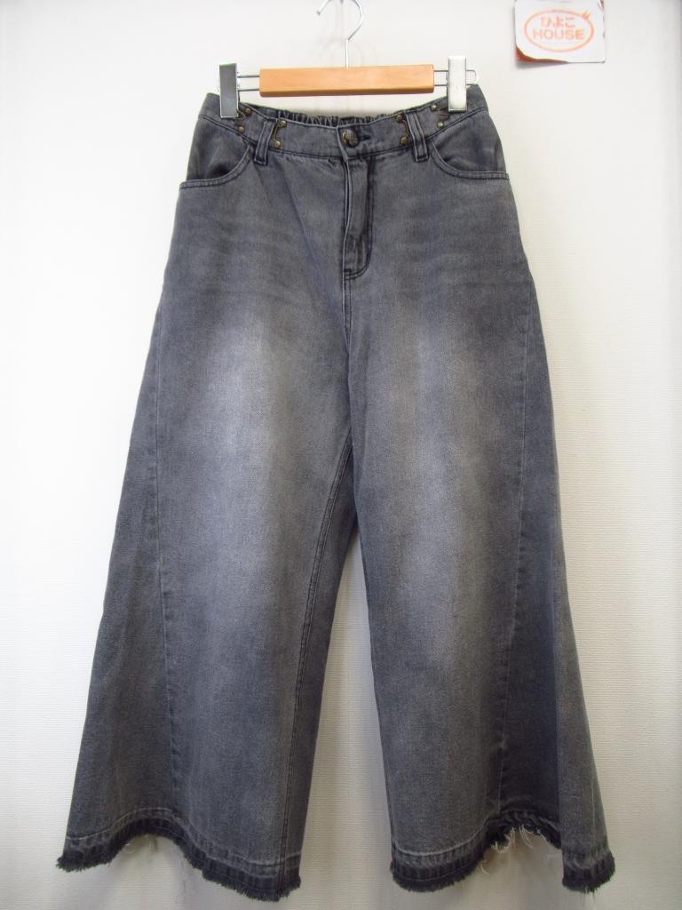 【サイズ表記】S 【実寸サイズ】ウエスト70股上31.5股下56太もも幅31 【デザイン】ブラック ワイドホックデニムパンツ ワイドシルエット 色褪せ加工 USED加工 ダメージ加工 デニム地 ウエスト一部ゴム 前ファスナー・カギホック・ボタン 後左右両サイドポケット 【状態】着用感・色あせ・毛羽立ち中くらい 定価6,050円(税抜) |