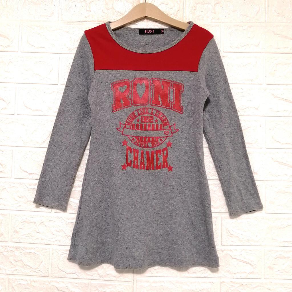【ロニィ】 『ロゴプリント ワンピース』 ◆[サイズ]=SM(120) ◆[実寸(平置き㎝)]=総丈55 ◆[色]=グレー×レッド ◆[デザイン]=フロント・バックロゴプリント ◆[状態]=着用感多少 ◆[材質]=6枚目画像参照 |