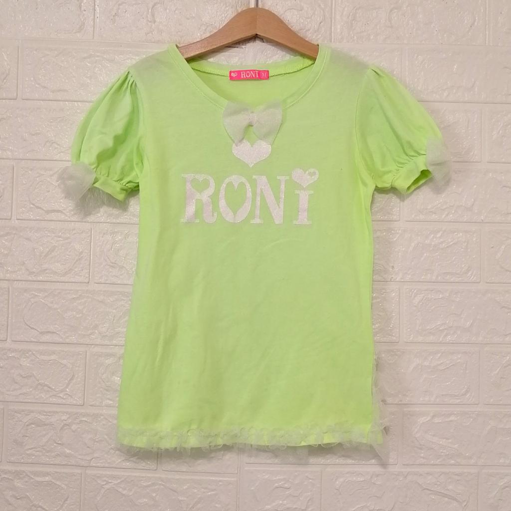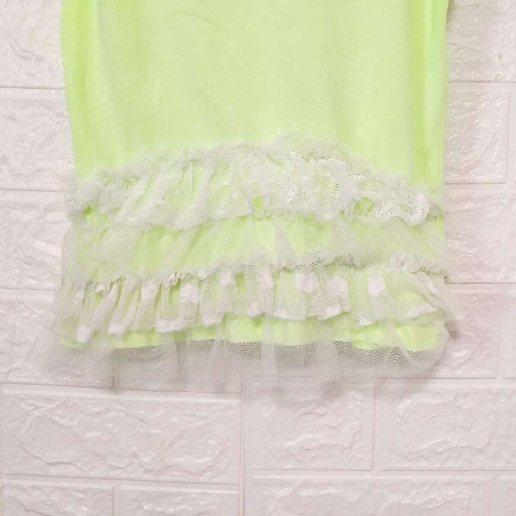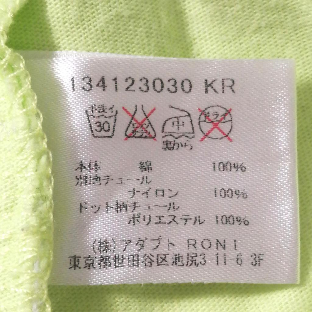 【ロニィ】 『チュールフリル&リボン付きパフスリーブTシャツ』 ◆[サイズ]=M(130) ◆[色]=蛍光イエロー ◆[デザイン]=フロントラメロゴプリント パフスリーブ フロント袖口チュールリボン 裾ー・バックチュール段フリル ◆[状態]=着用感多少 フロント裾上薄ジミ箇所あり ※9枚目画像のシールは、目印です ◆[材質]=8枚目画像参照 |