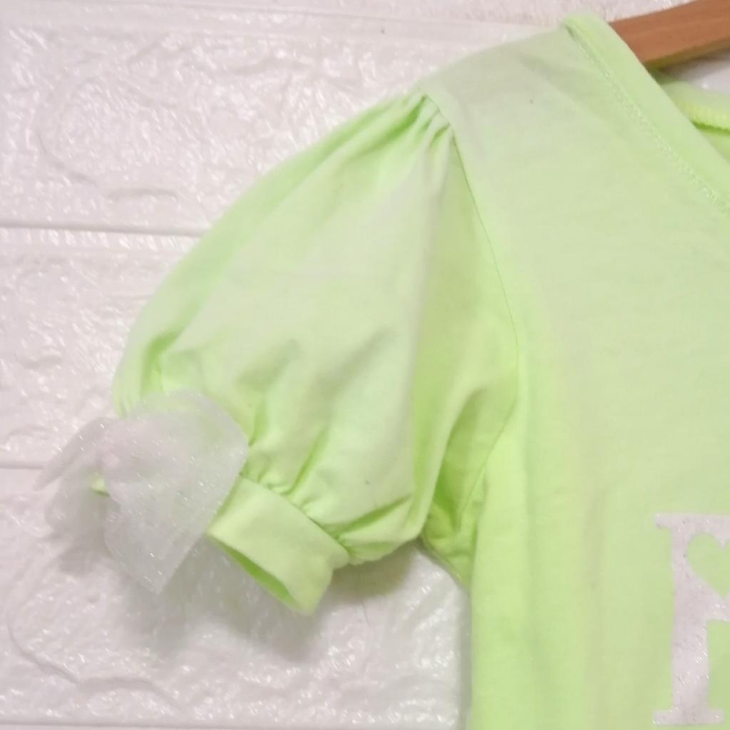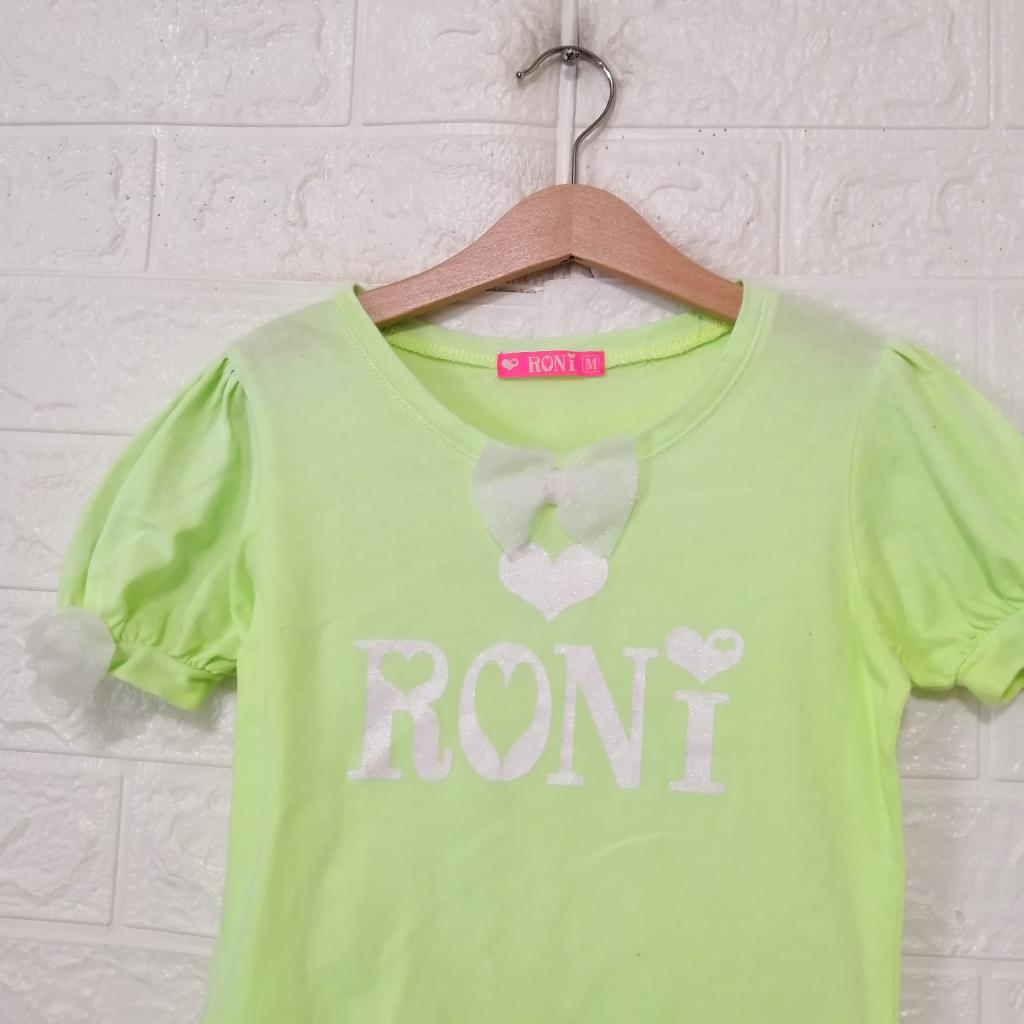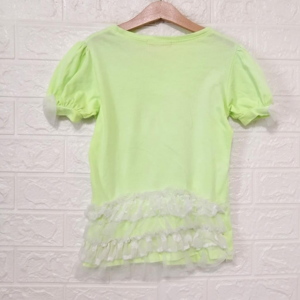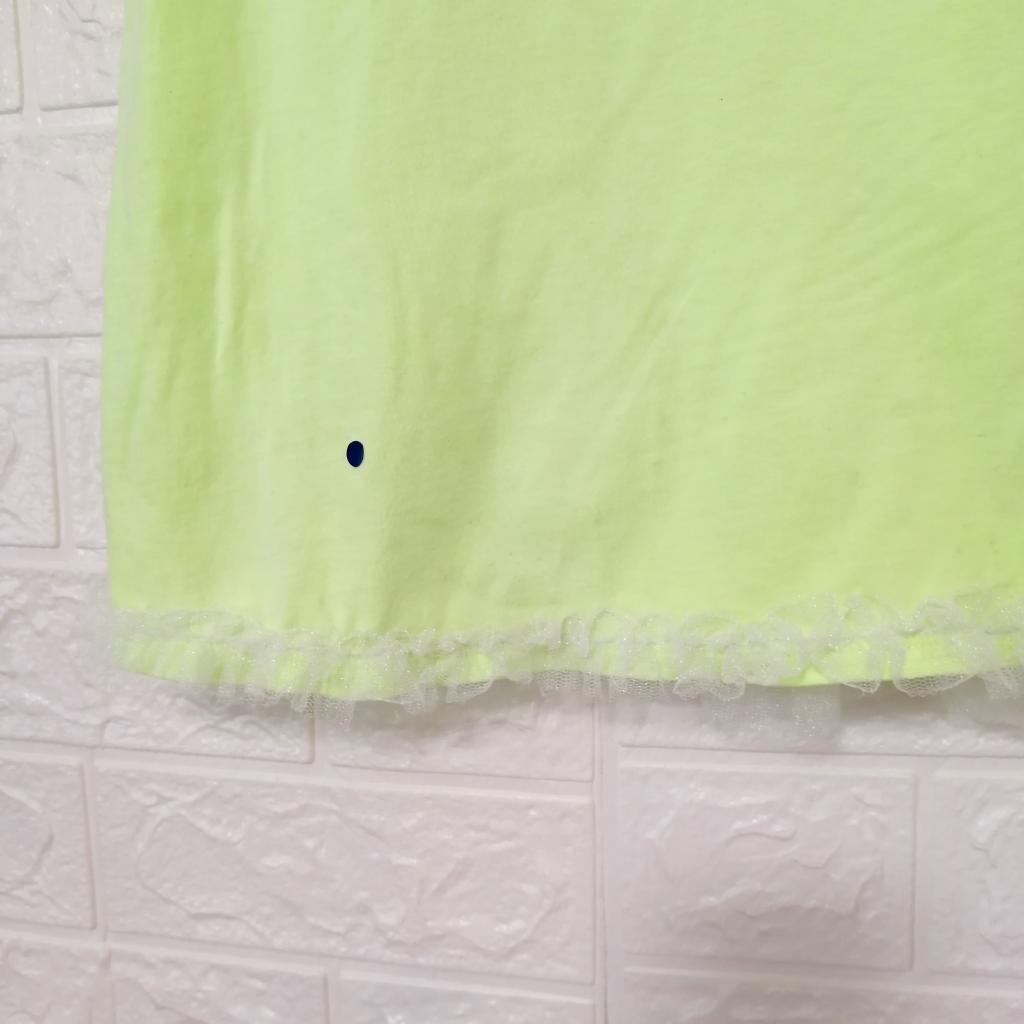 【ロニィ】 『チュールフリル&リボン付きパフスリーブTシャツ』 ◆[サイズ]=M(130) ◆[色]=蛍光イエロー ◆[デザイン]=フロントラメロゴプリント パフスリーブ フロント袖口チュールリボン 裾ー・バックチュール段フリル ◆[状態]=着用感多少 フロント裾上薄ジミ箇所あり ※9枚目画像のシールは、目印です ◆[材質]=8枚目画像参照 |