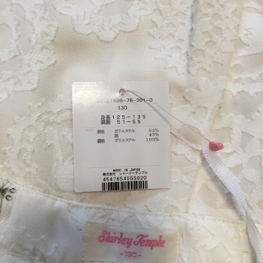 ☆★ガーリー特集★☆ シャーリーテンプル 【サイズ】130 【実寸(cm)】W54 スカート丈45 【色】 ホワイト 【デザイン】 後ろカギホック・ファスナー開閉 裏地あり |