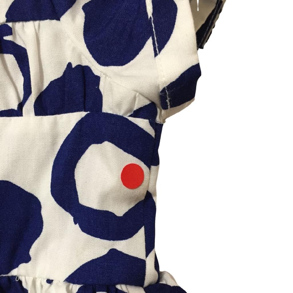☆★インポート特集★☆ シモネッタ 【サイズ】92 【実寸(cm)】身幅28 着丈47 肩幅22 袖丈8 W52 【色】 ブルー ホワイト 【デザイン】 後ろファスナー開閉 裏地あり 【状態】脇・裾・背・襟ぐりに薄汚れあり |