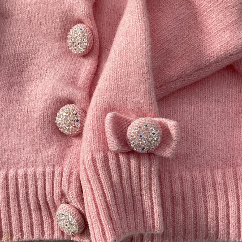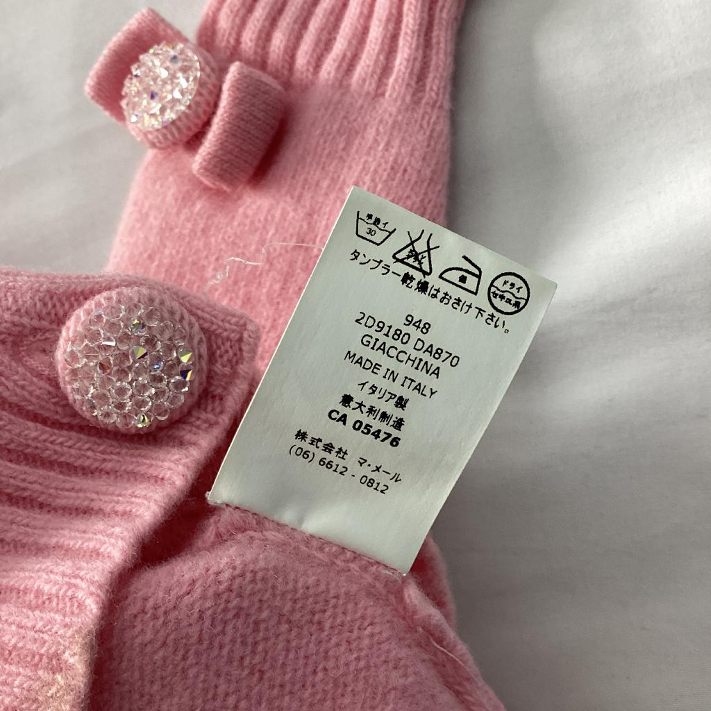 【ランク:3.5】 【サイズ】90cm 【実寸(㎝)】身幅24 袖丈25 肩幅22 丈25.5 【素材(%)】※タグ参照 【裏地(%)】なし 【色】ピンク系 【デザイン】ニットカーディガン 厚手生地 ボタンラインストーン付き 袖口リボン縫い付け 【状態】使用感あり(小) 裾汚れあり |