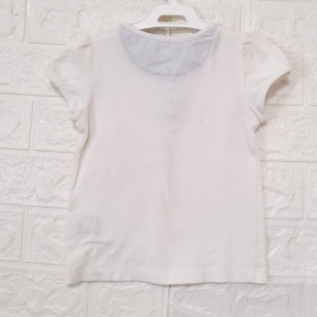 【タルティーヌエショコラ】 『胸元飾りリボン パフスリーブTシャツ』 ◆[サイズ]=90 ◆[実寸(平置きcm)]=身幅27 着丈35 ◆[色]=ホワイト×ライトブルー ◆[デザイン]=左肩開閉スナップボタン フロント飾りリボン パフスリーブ ◆[状態]=着用感多少 ◆[材質]=6枚目画像参照 |