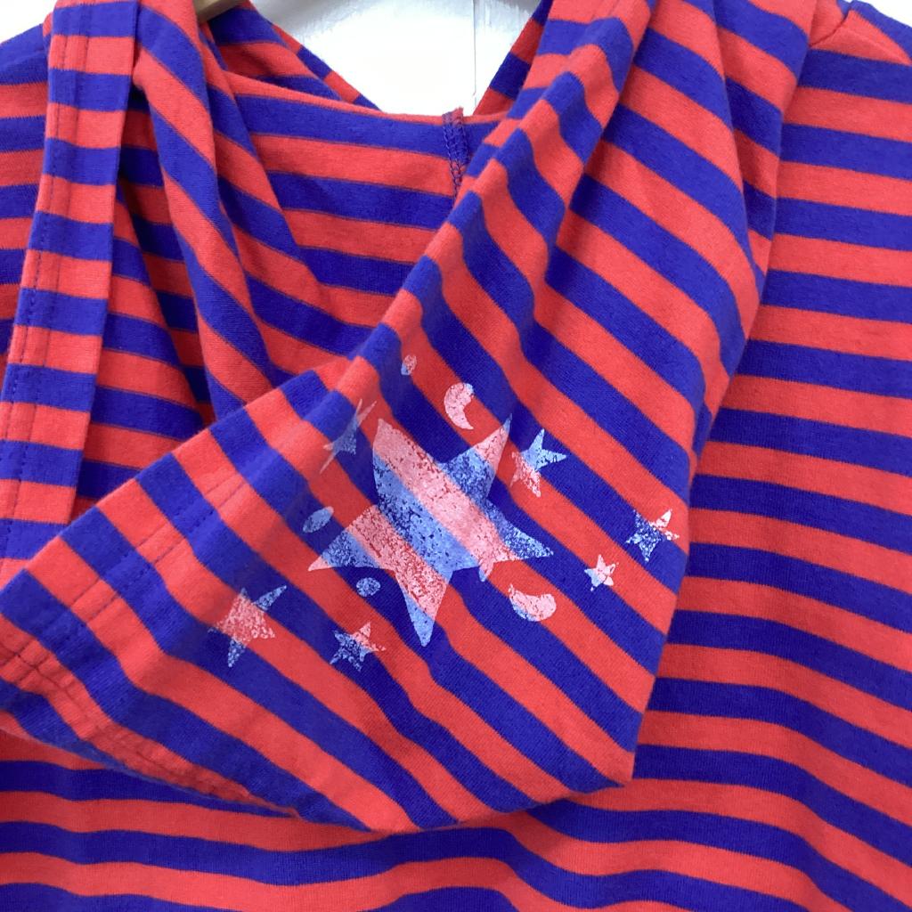 【サイズ】140cm 【実寸(㎝)】身幅38 袖丈48.5 肩幅34 丈47.5 【素材(%)】※タグ参照 【裏地(%)】なし 【色】レッド系 【デザイン】赤×ブルーのボーダー柄 パーカー 【状態】新品タグ付き |