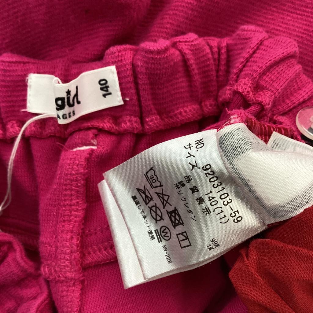 【サイズ】140cm 【実寸(㎝)】W46~ H70 丈81.5 【素材(%)】※タグ参照 【裏地(%)】なし 【色】ピンク系 【デザイン】ウエストアジャスター 両横ポケット 右後ろポケット 刺しゅうあり 【状態】使用感あり(中) 毛羽立ちあり(中) 後ろ汚れあり |