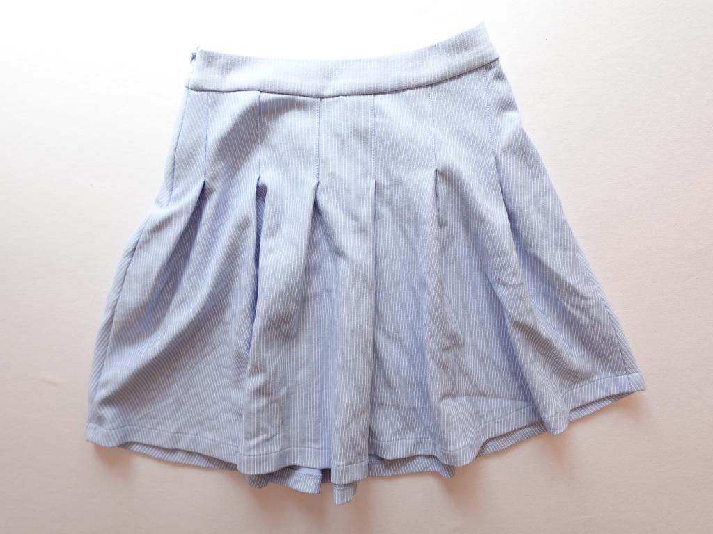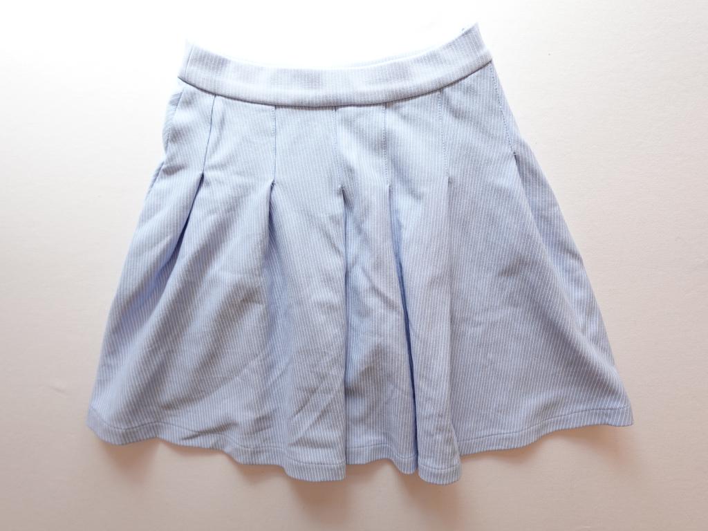 | コメント | 表示サイズ:CM152 レーヨン・ポリエステル・ポリウレタン ストレッチ スウェット地風 ストライプ ウエストゴム 左サイドファスナー 色あせ・ピリングほんの少々 実寸サイズ:ウエスト57cm~/スカート丈38cm |