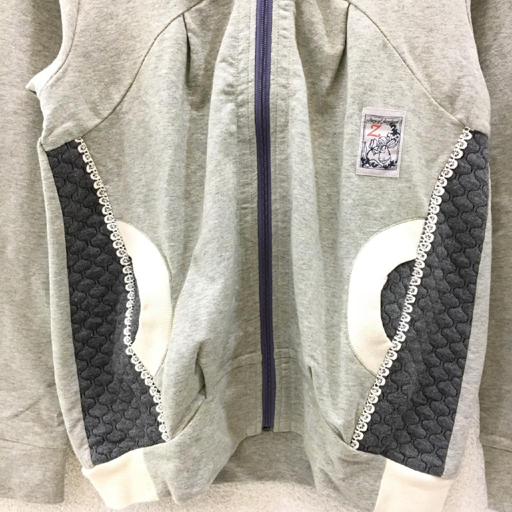 定価10800円+税【実寸】身幅43 総丈55【特徴】ライトグレー 薄手トレーナー地 内側パイル地 ストレッチ 前ファスナー 前ポケット T※ |
