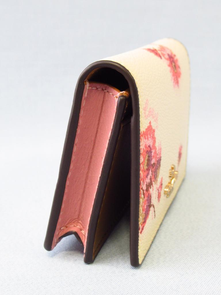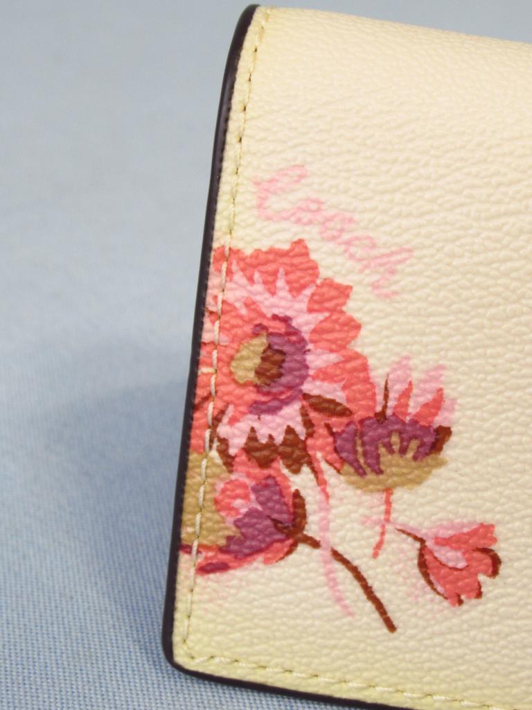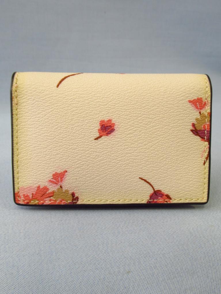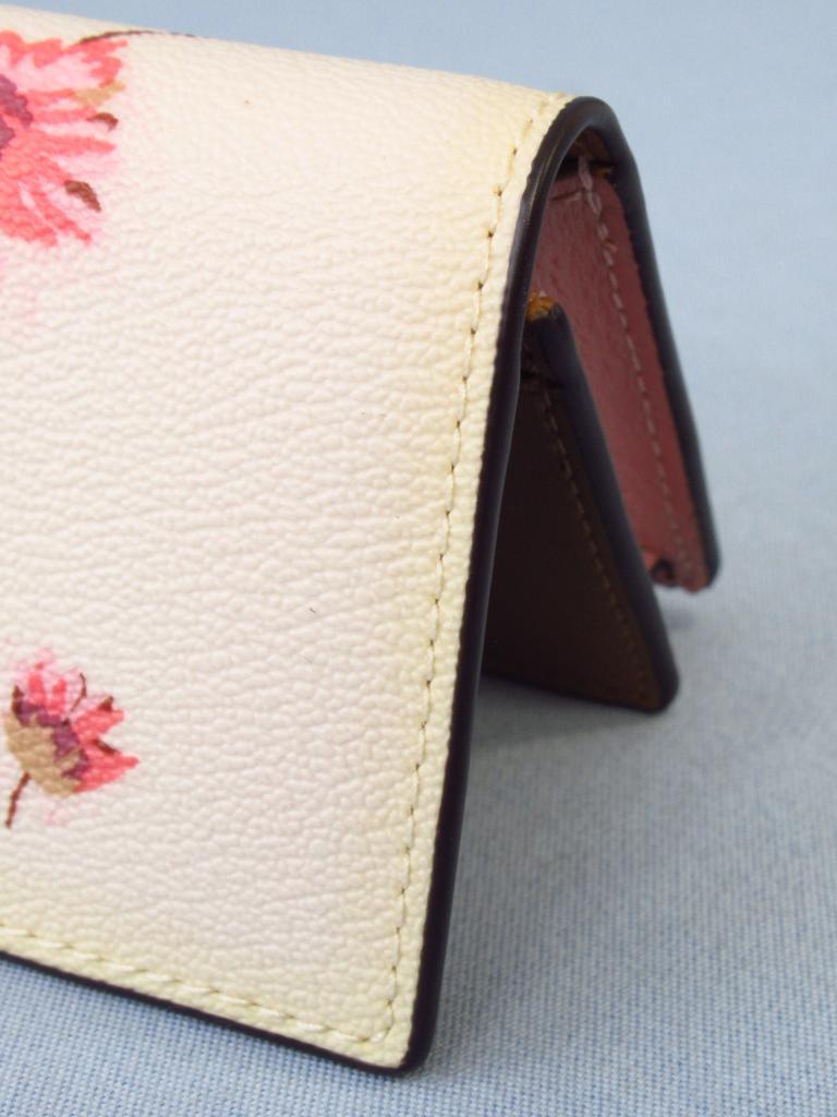 | コメント | 「カードケース、名刺入れ」 【材質】天然皮革 【実寸サイズ】縦7×横11×まち2.3 【デザイン】アイボリー地にピンクの花柄×くすみピンク ブランドロゴ入り 内ポケット×3 【状態】ふち全体的に変色あり 使用感ほんの少々、黄ばみ中くらい |