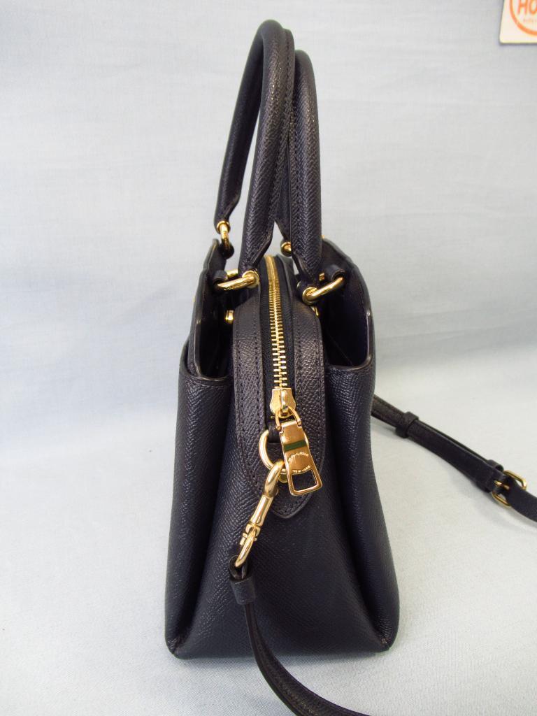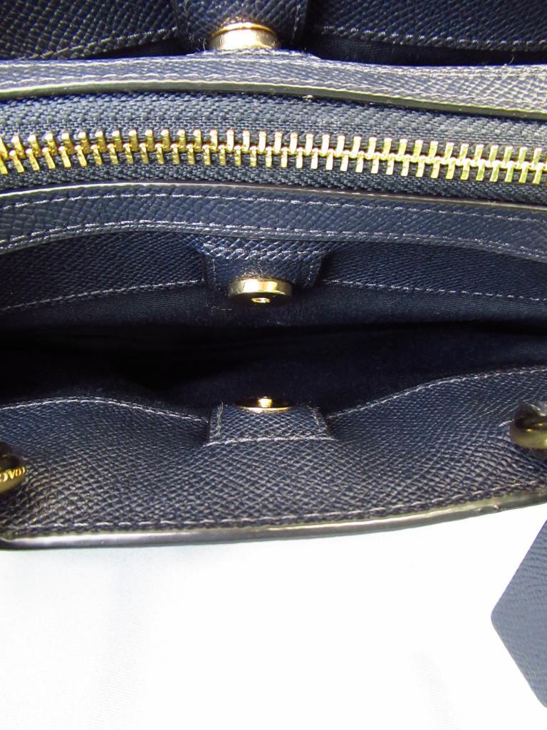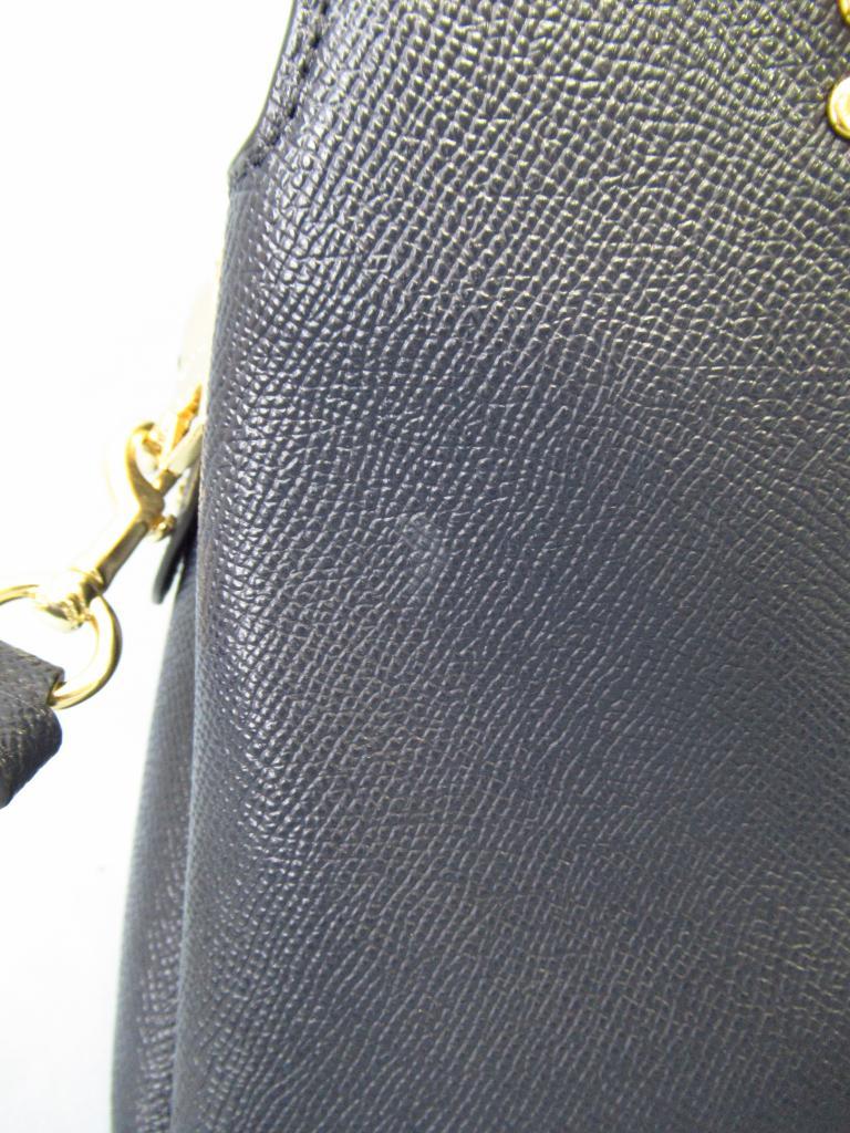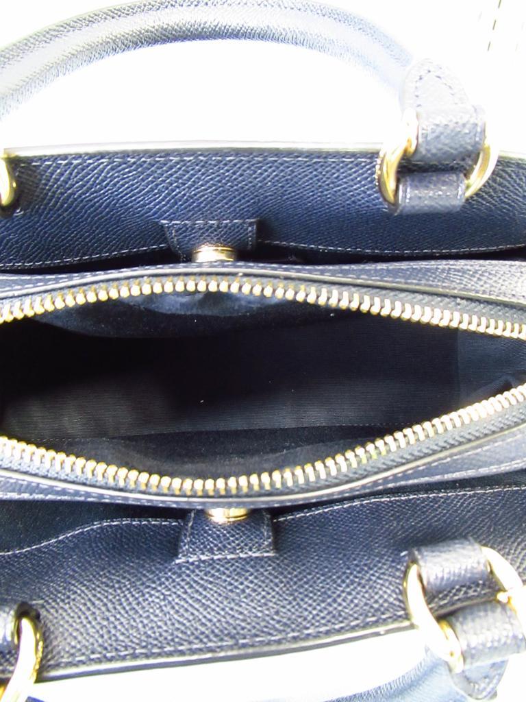 | コメント | 「ミニリリーキャリーオール」 【材質】天然皮革 【実寸サイズ】縦17.7×横23~26.5×まち8.5持ち手の長さ29.5調節不可、ショルダーひも118~136 【デザイン】ネイビー ペプルドレザー ハンドバッグとショルダーバッグの2way 外ポケット×1 内ポケット×3 ファスナー・マグネット開閉 【状態】前右にスレ1cm 使用感少々 |