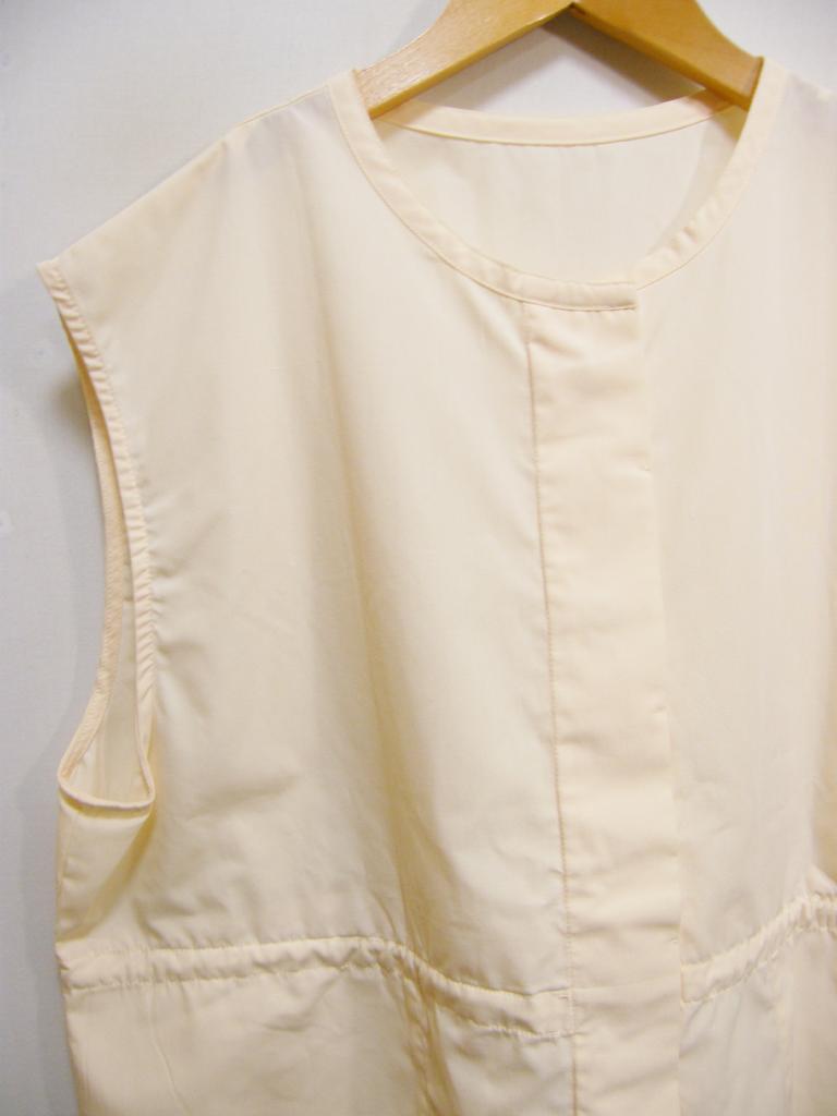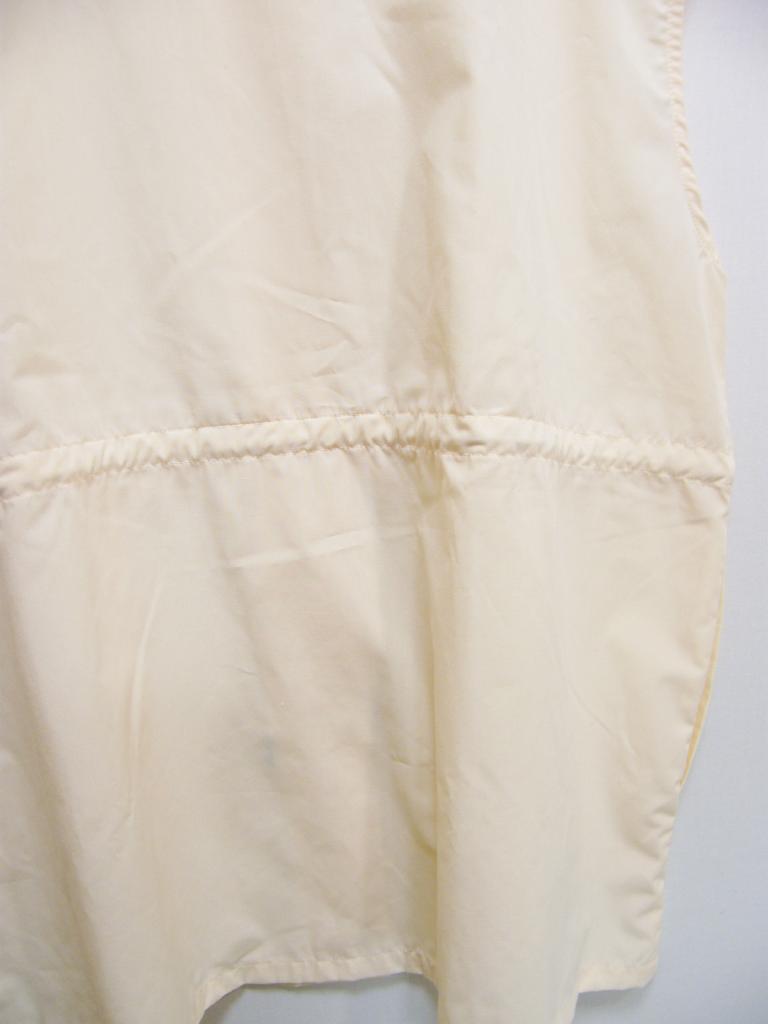 | コメント | 【色柄・デザイン】ホワイト系色 オフホワイト ウエスト付近内ひもあり 両サイドポケット 前かくしボタンどめ 【商品状態】保管シワ少し 着用感少し 【実寸サイズ(約センチ)】バスト120 着丈68 肩幅48 ◆メール便OKサイズ※『代引』お支払は「不可」です◆ |