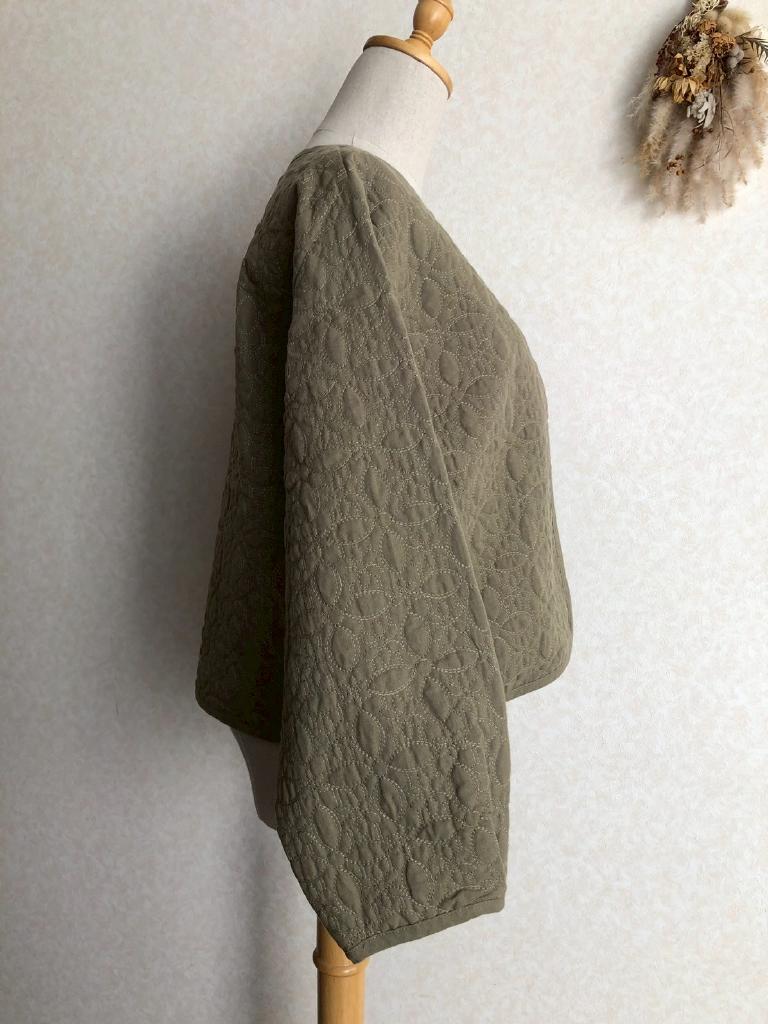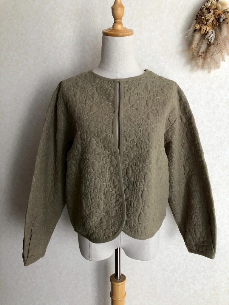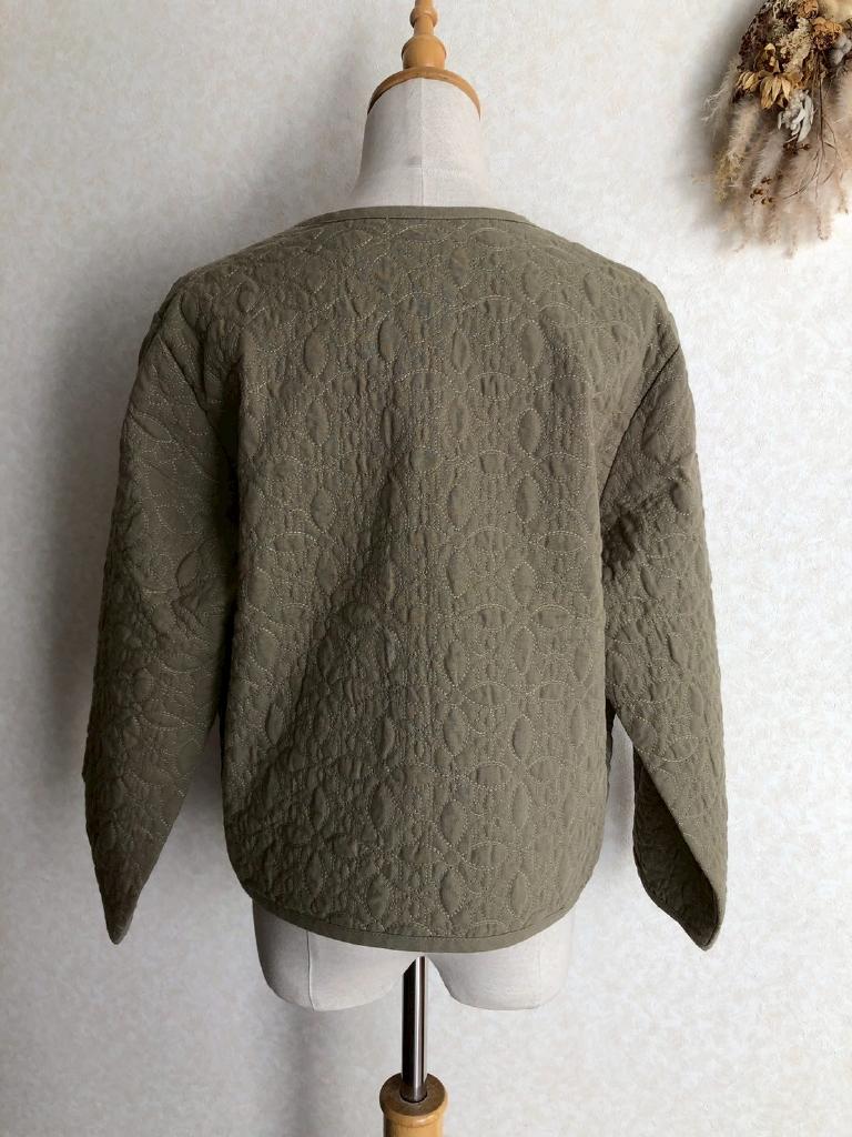 | コメント | 【実寸約cm】B112 着丈 52 肩幅 41 袖丈 47 【サイズ】 F 【素材%】綿92 麻8 【色】カーキ 【アイテム】花柄ステッチキルトジャケット 【ポケット】両サイド 【ボタン】前カギホック 【状態・シミやホツレ等】特になし 【着用感】新品タグ付き 【備考】 |