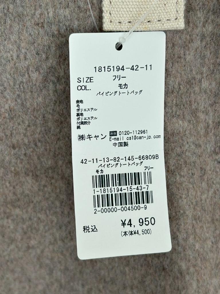| コメント | 【実寸約】横幅33 高さ38 マチ10 【アイテム】パイピングトートバッグ 【色・柄】モカ 【ファスナーの有無】なし 【内ポケット】あり 【状態・シミや汚れ、擦れ等】なし 【着用感】新品未使用 【備考】 |