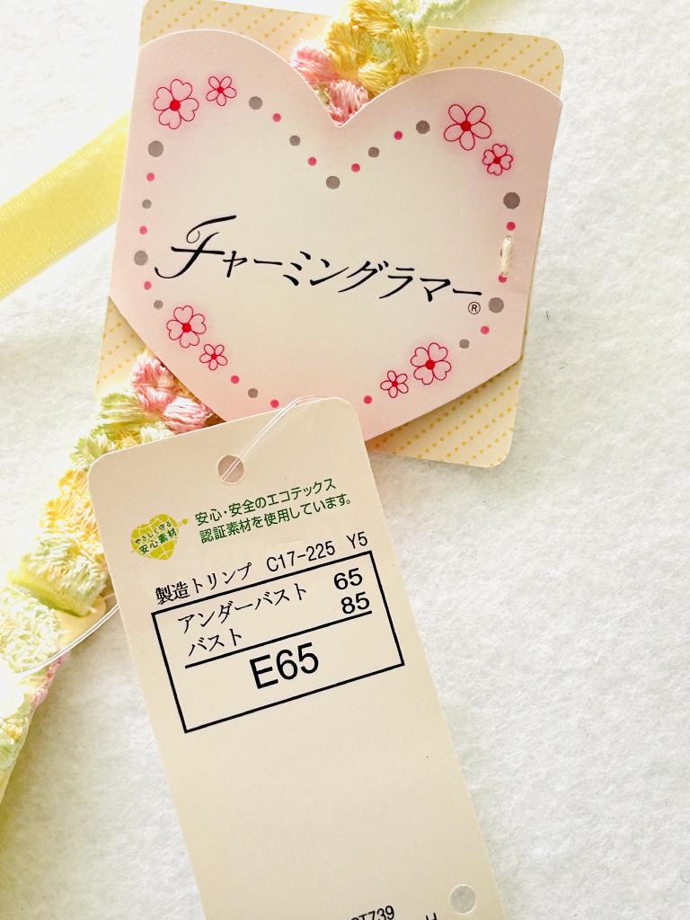 【記載サイズ】E65 アンダーバスト65 バスト85 【色】薄イエロー 薄ピンク他 【詳細】肩紐サイズ調整可、ホック2段3列調整可、ワイヤー入り 【状態】新品タグ付き ※おうちで洗える◎ ご不明な点や気になる点などございましたら、お気軽にご質問ください♪ |