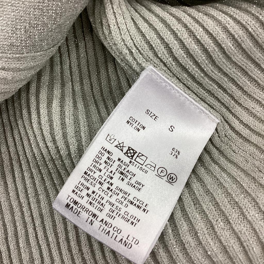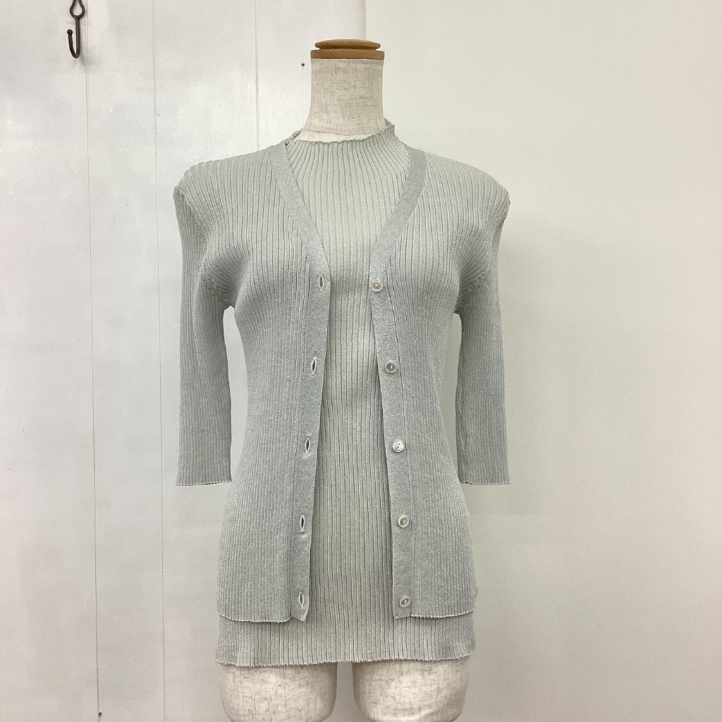 | コメント | 【サイズ】Sサイズ 【実寸(㎝)】(上)B58 袖丈32.5 肩幅39 丈53 (下)B62 肩幅38 丈59 【素材(%)】※タグ参照 【裏地(%)】なし 【色】グレー系 【デザイン】薄手生地 シルバースリット糸入り (上)前ボタン 7分袖 【状態】新品タグ付き |