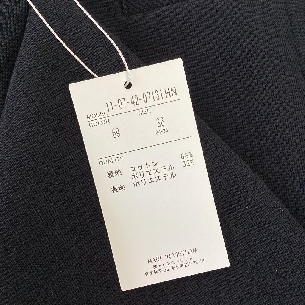 | コメント | 【2024年製】 【定価:¥29700】 【サイズ】36 【実寸(㎝)】B86 W87 袖丈55 肩幅37 丈65 【素材(%)】※タグ参照 【裏地(%)】あり 【色】ネイビー系 【デザイン】ジャージステッチダブルブレスジャケット 前ボタン 両横飾りポケット 裏地あり 品番:11-07-42-07131HN 【状態】新品タグ付き |