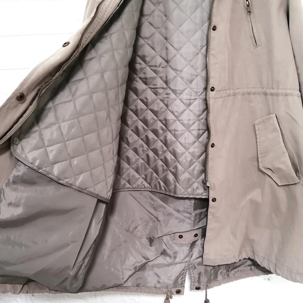 | コメント | 【ブージュルード】 『ライナー付き ラビットファー モッズ コート』 ◆[サイズ]=38 ◆[実寸(平置きcm)]=身幅54 肩幅41 袖丈57 着丈87 ◆[色]=色褪せ感のあるカーキ ◆[デザイン]=フロント開閉ファスナー フードあり フード・袖口ラビットファー付き(取り外し可能) キルティングライナー付き ウエスト・裾スピンドル付き ◆[状態]=着用感少々ありますが、比較的綺麗なお品です ◆[材質]=9枚目画像参照 |
