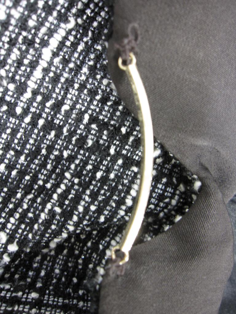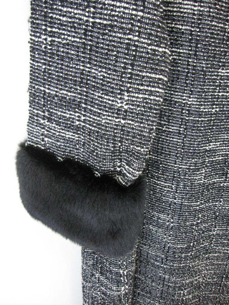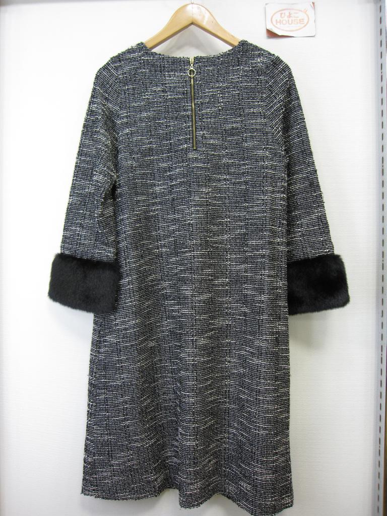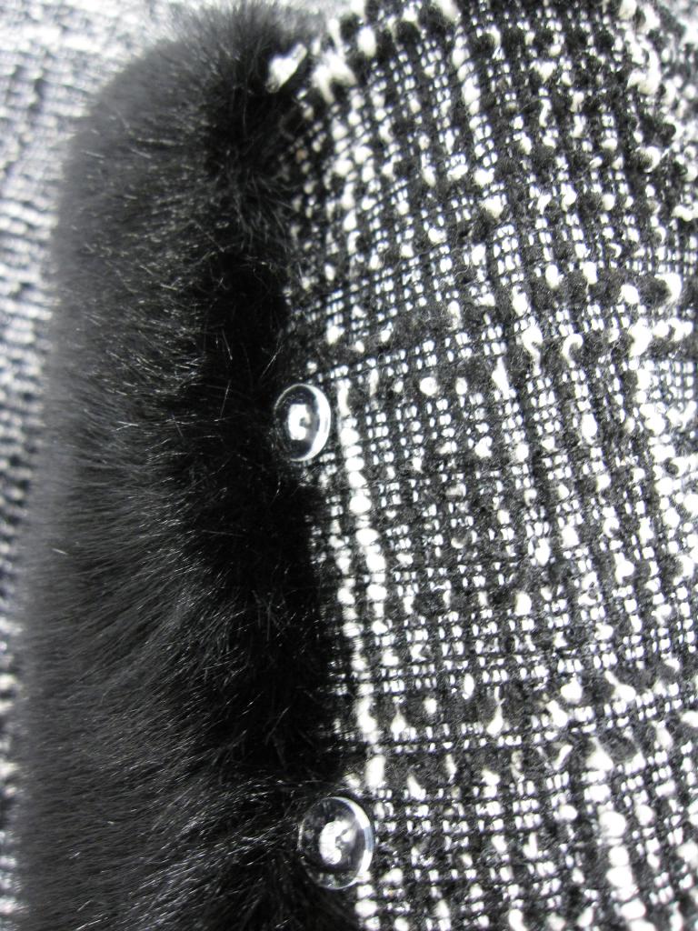 | コメント | 【材質】写真参照 【実寸サイズ】バスト92肩幅35袖丈47+ファー、着丈93 【デザイン】黒×白ラメツイード 袖口黒ファー(取り外し可) 裏地あり 後ファスナー 【状態】糸のひっかけ、糸出少々 首前飾りのぬいつけ糸雑め 着用感・毛羽立ち中くらい |