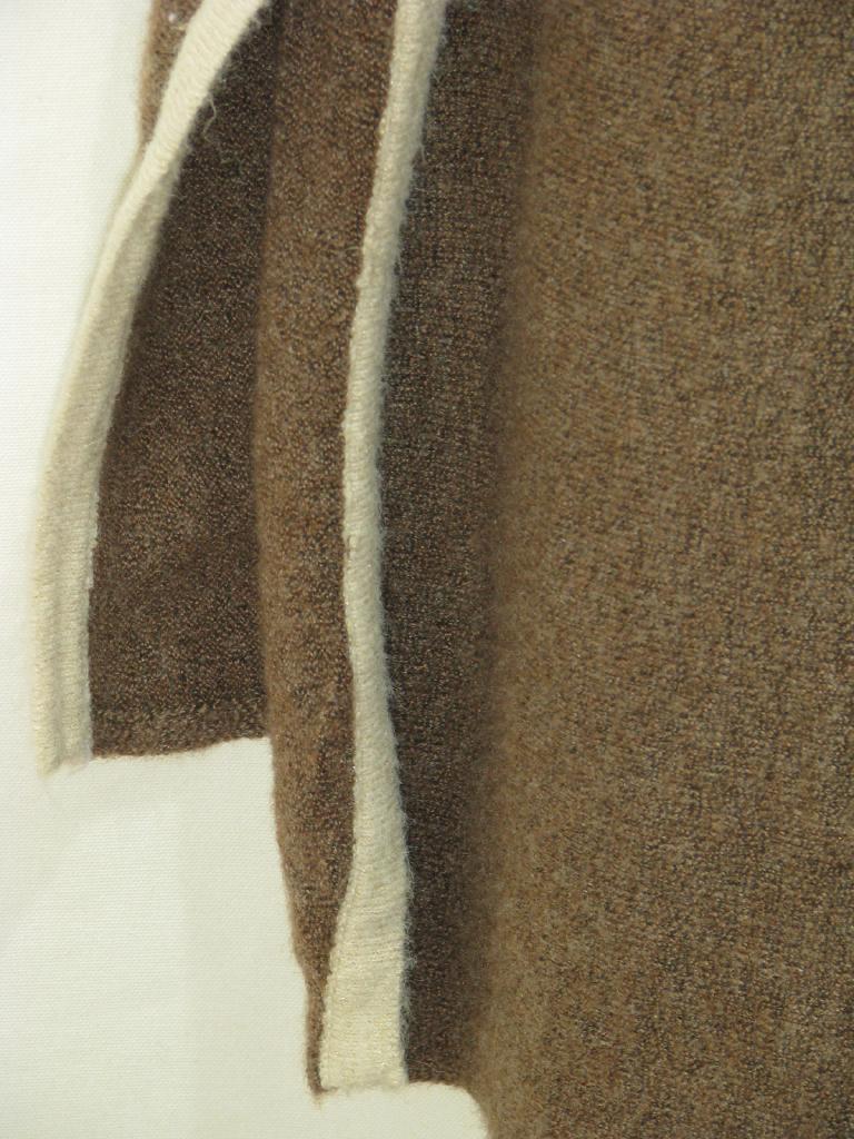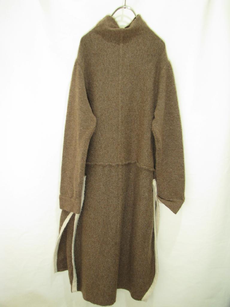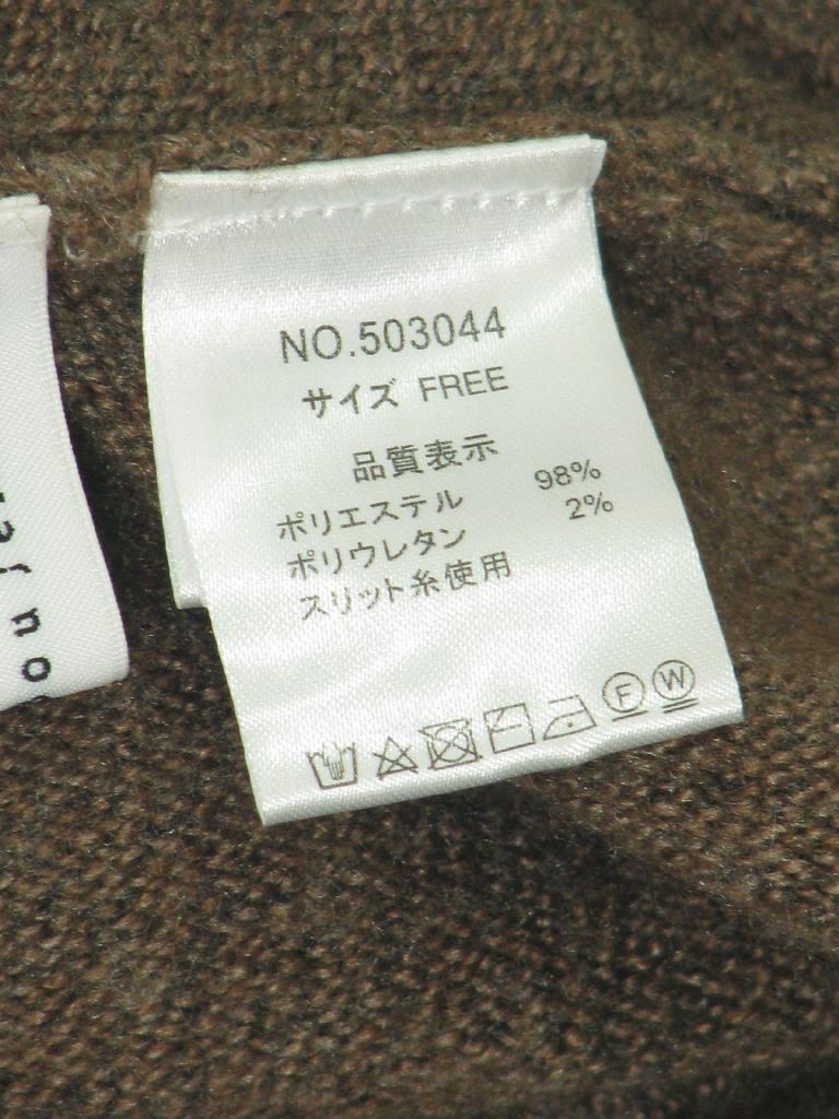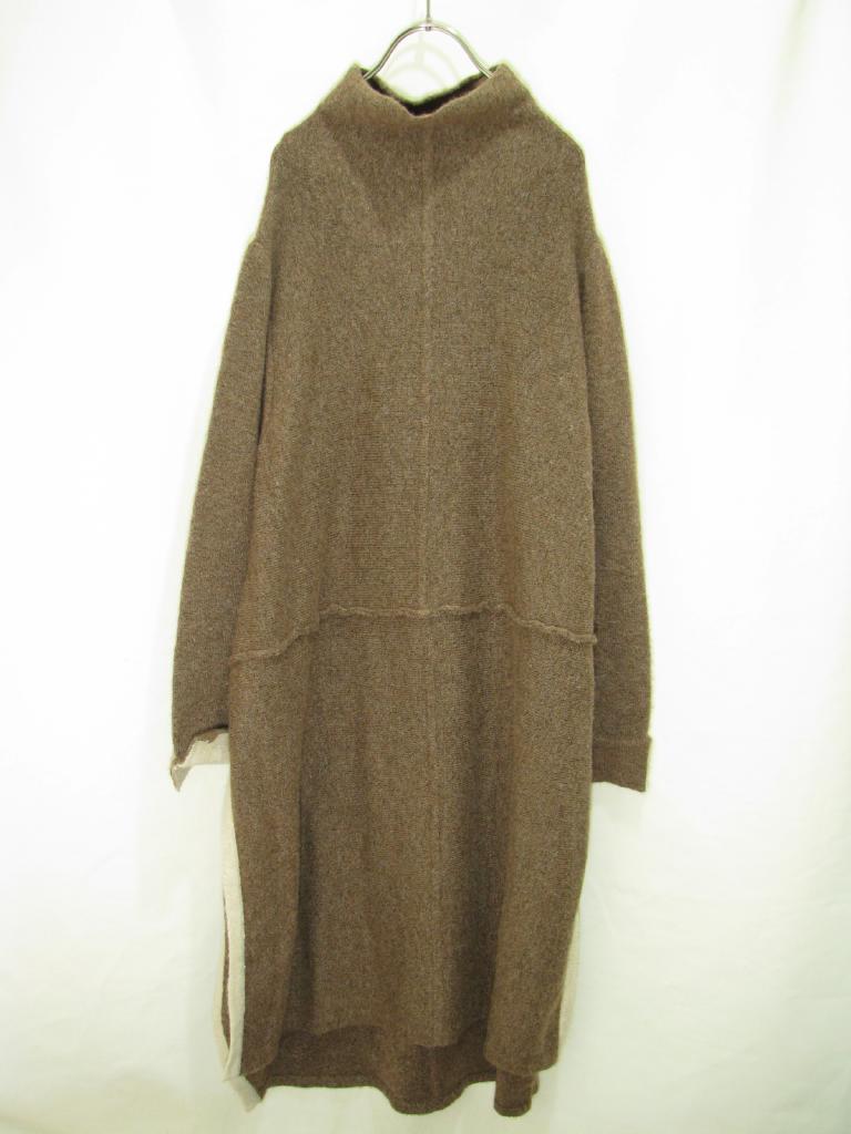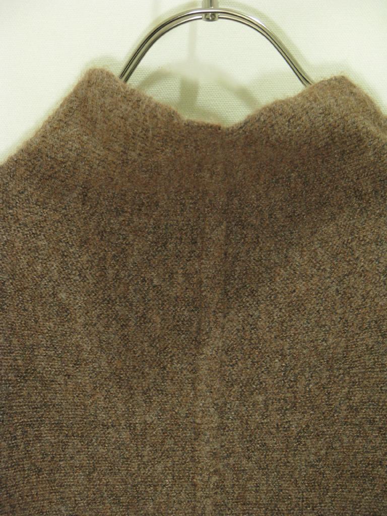 | コメント | 【実寸(cm)】着丈99-110 身幅40.5 肩幅39 袖丈62.5 裾脇スリット(前側で)50 【色】茶 ミックス感あり 【デザイン】ニット 編み地横使い 縫い目のないタートルネック 両脇スリット端&袖口裏、ラメ入りのベージュカラー、チラチラ光沢感あり 後裾長いデザイン 【状態】糸質もありますが全体に少々毛羽立ち、毛羽ヨレ |