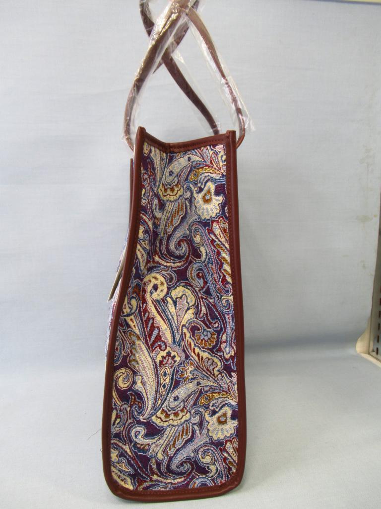 | コメント | 【材質】綿・ポリエステル、持手:合皮 【実寸サイズ】縦37.3×横31.3×まち13持ち手の長さ48調節不可 【デザイン】ネイビー×赤×白×黄のジャガード柄 トートバッグ 内ポケット×1 |