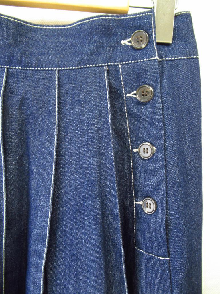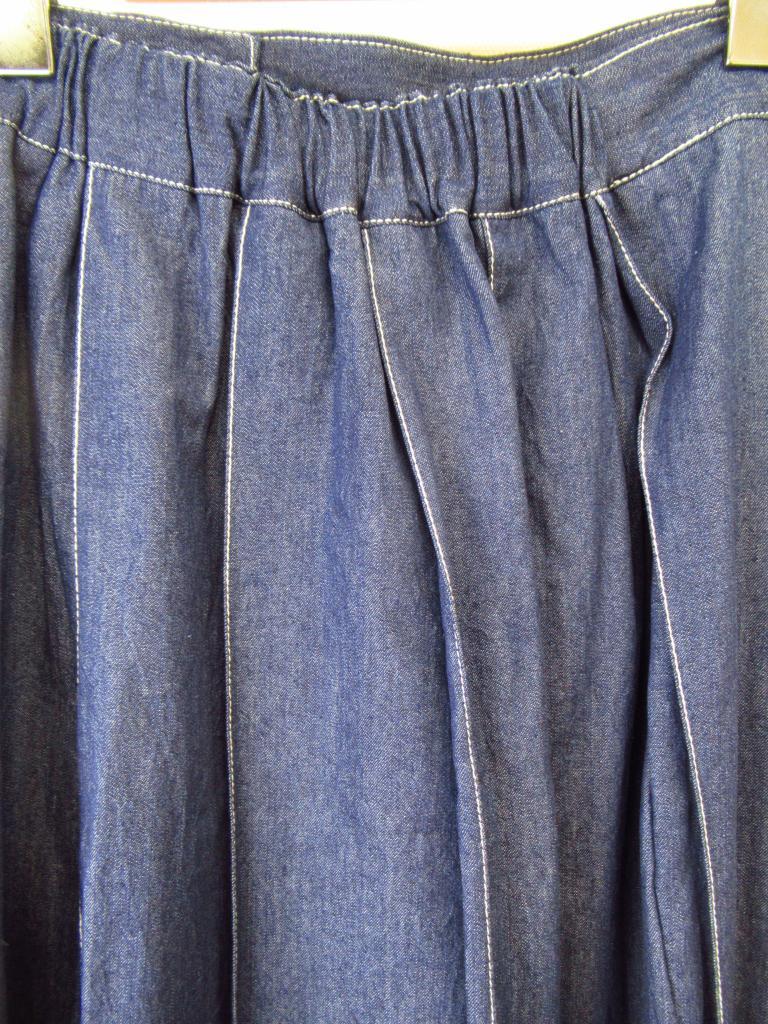 | コメント | 「プリーツステッチスカート」 【材質】綿100、裏地:ポリエステル100 【実寸サイズ】ウエスト68スカート丈89.5ヒップ100 【デザイン】インディゴブルー デニムスカート ウエスト一部ゴム 替えボタンあり 裏地あり 横ボタン 定価8,900円(税込) |