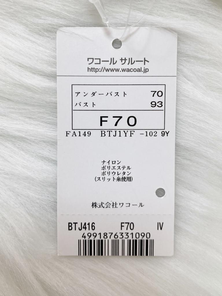 | コメント | 【表記サイズ】F70(アンダーバスト70 バスト93) 【素材】品質タグの画像あり。ご確認下さい。 【色・デザイン】ホワイト系/メーカー表記:IV/ワコールサルート BTJ416 16グループ P-up(プッシュアップ)タイプ パッドあり(取外し可)ホック2段2調節 ブラジャー単品 【状態】新品タグ付です。 【ゆうパケット】不可 ※カップを多少押さえて梱包いたします。ご了承くださいませ。 ↓お買い得なイベント・セール情報を配信♪LINEお友達登録お待ちしています↓ ♯アンダーウェア |