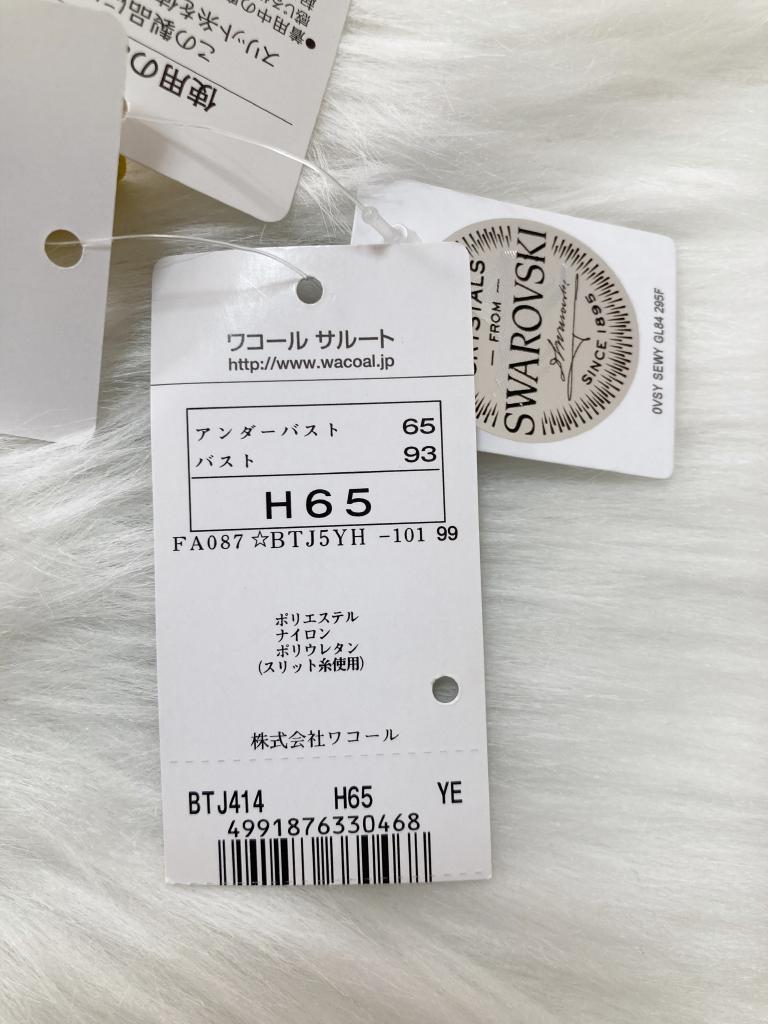 | コメント | 【表記サイズ】H65(アンダーバスト65 バスト93) 【素材】品質タグの画像あり。ご確認下さい。 【色・デザイン】イエロー系/メーカー表記:YE/ワコールサルート BTJ414 14グループ 青の都サマルカンド パッド無し パッド受けあり ホック2段2調節 ブラジャー単品 【状態】新品タグ付です。 【ゆうパケット】不可 ※カップを多少押さえて梱包いたします。ご了承くださいませ。 ↓お買い得なイベント・セール情報を配信♪LINEお友達登録お待ちしています↓ ♯アンダーウェア |