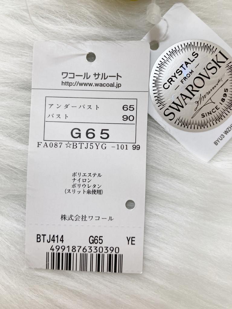 | コメント | 【表記サイズ】G65(アンダーバスト65 バスト90) 【素材】品質タグの画像あり。ご確認下さい。 【色・デザイン】イエロー系/メーカー表記:YE/ワコールサルート BTJ414 14グループ 青の都サマルカンド パッド無し パッド受けあり ホック2段2調節 ブラジャー単品 【状態】新品タグ付です。 【ゆうパケット】不可 ※カップを多少押さえて梱包いたします。ご了承くださいませ。 ↓お買い得なイベント・セール情報を配信♪LINEお友達登録お待ちしています↓ ♯アンダーウェア |