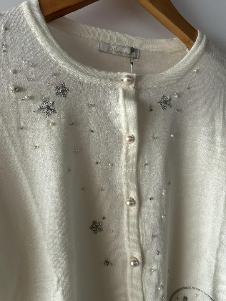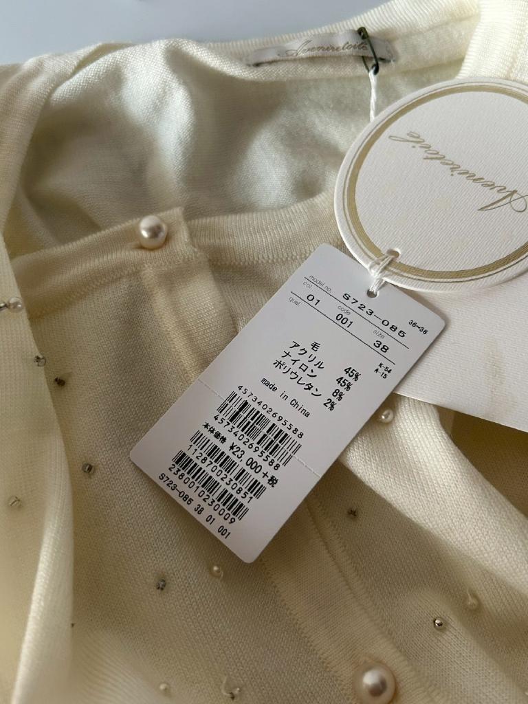 | コメント | 【定価】¥23000+税 【サイズ】38(M) 【実寸】バスト94 袖丈58 着丈51 肩幅35 【色・デザイン】アイボリー パール・ビーズ・刺繍あり |