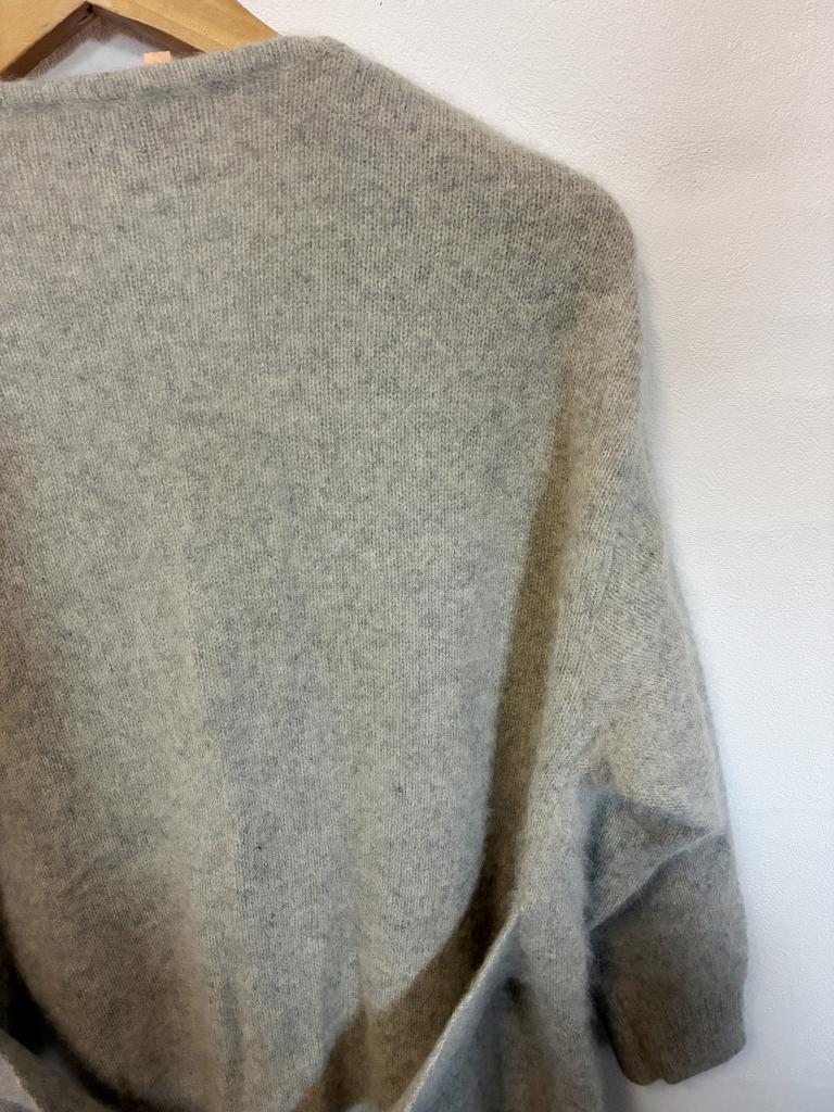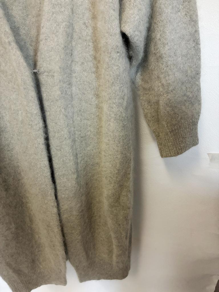 | コメント | 【評価】3 【サイズ】表示なし 【実寸】バスト108 着丈93 脇下68 袖丈42 肩幅49 【材質】毛100% 【状態】毛羽立ち・着用感…少々 クリーニング済み 【色・デザイン】グレー 前留めホック 両サイドスリット やわらかい ニット 【風合い】 ◎ 【生地の厚さ】 厚手 【透け感】 なし |
