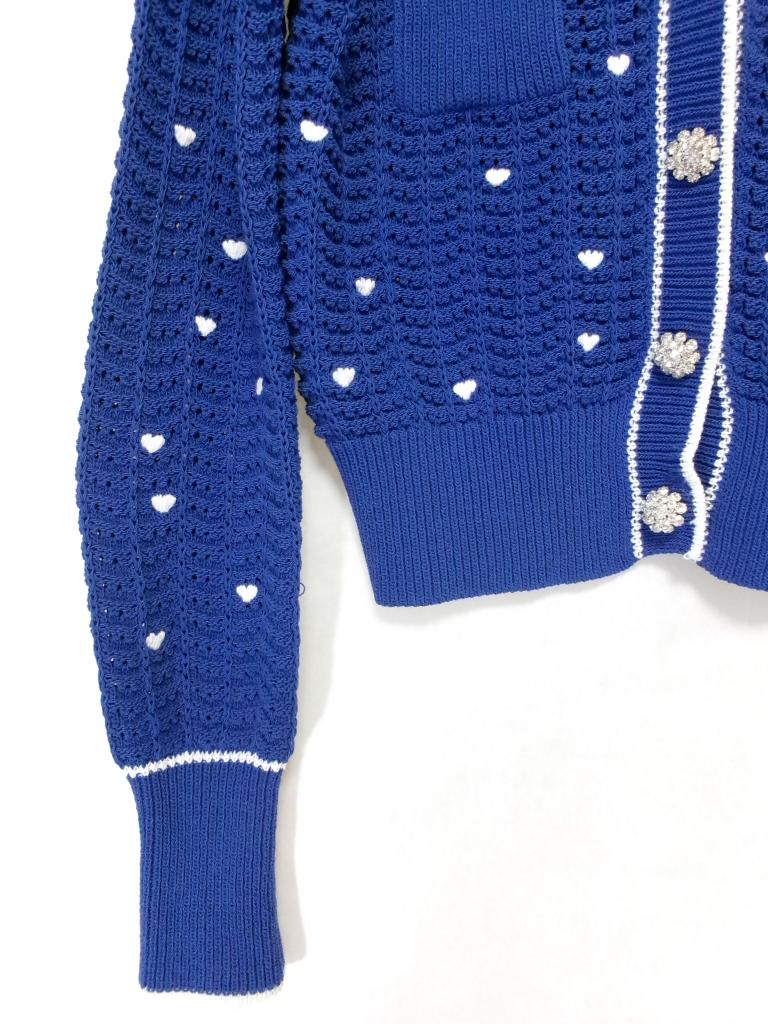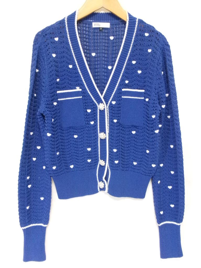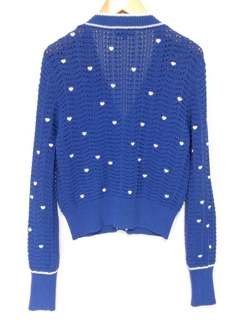 | コメント | ☆★デザイナーズ特集★☆ ダブルスタンダードクロージング ハート刺繍カーディガン 2023年製/定価35,200円(税込) 【品番】 0209230231 【サイズ】 メーカー表示38 【実寸(cm)】 B86 着丈47 肩幅39 袖丈65 【色】 ブルー×ホワイト 【デザイン】 ニットカーディガン 前スナップボタン開閉 【状態】 刺繍にほつれあり |