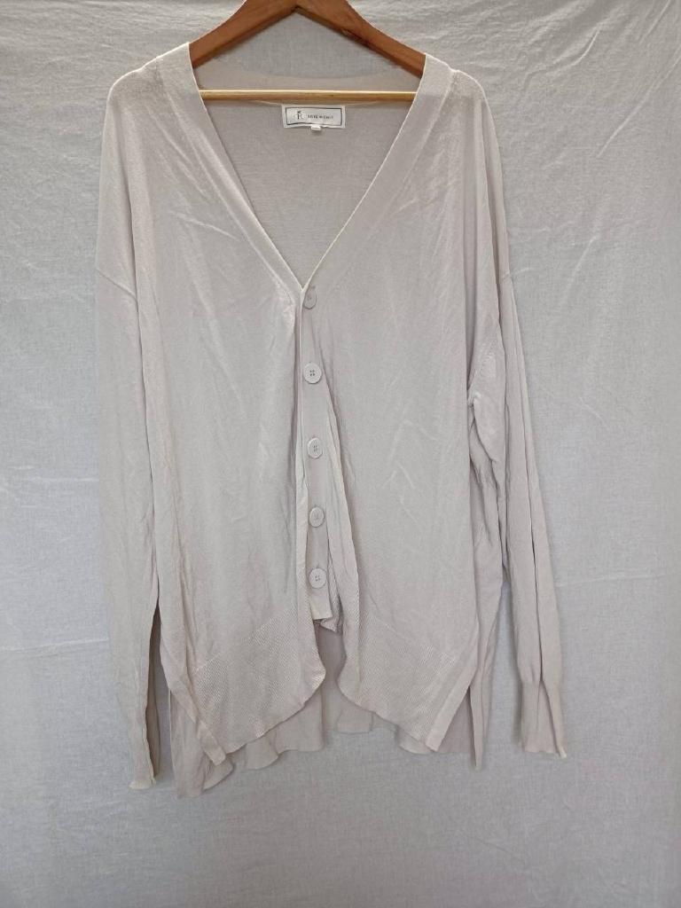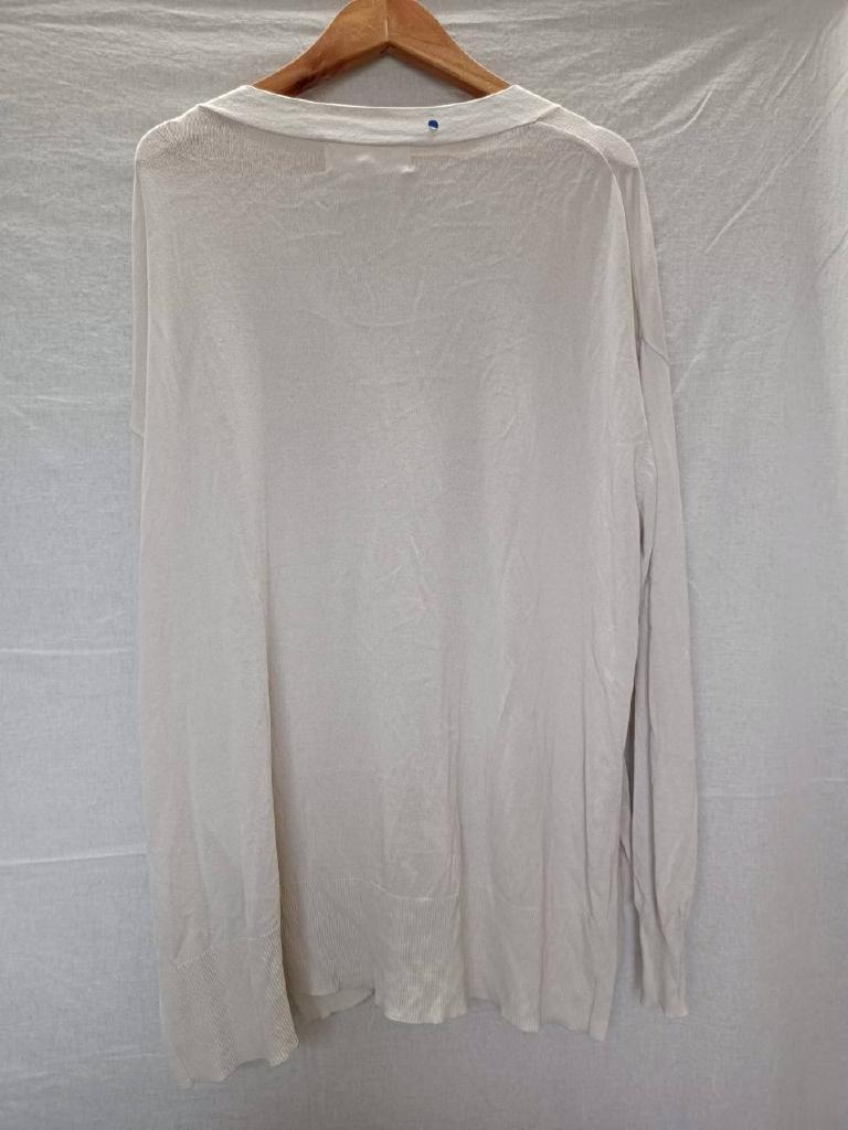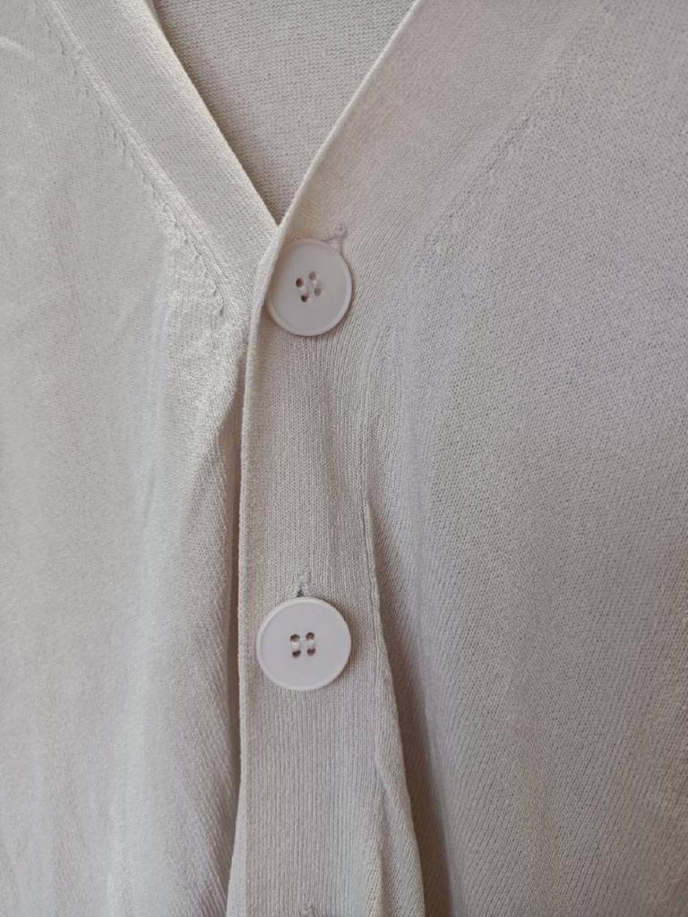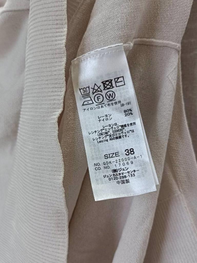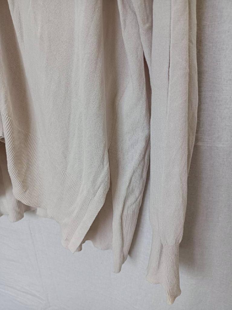 | コメント | 【メーカーサイズ】38 【実寸(cm)】バスト118 着丈64 肩幅56 袖丈49.5 【素材】レーヨン ナイロン 【デザイン・色】グレーがかったホワイト ニット地 前ボタン 裾横スリット16㎝ 【状態】少々毛羽立ち 後小さい汚れ 袖口くすみ #おすすめ #7222125 ☆ |