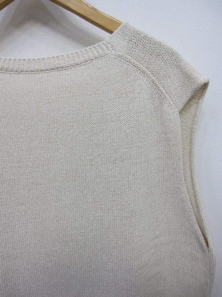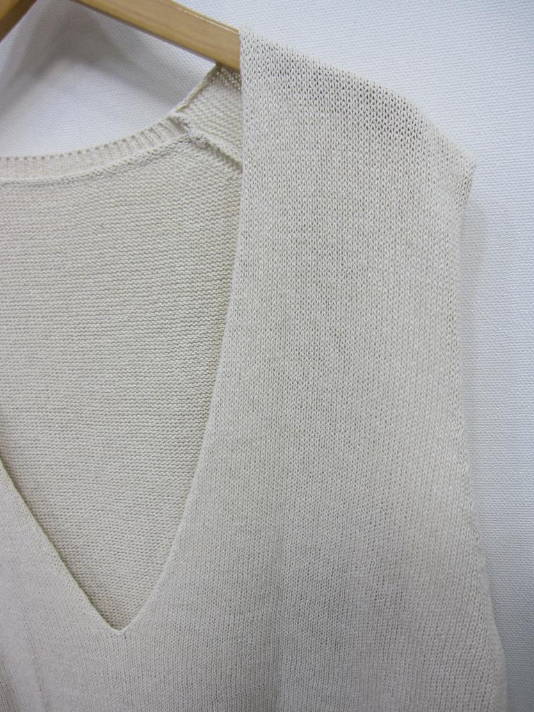 | コメント | 【材質】綿65ナイロン12麻23 【実寸サイズ】バスト108肩幅43.5着丈63両サイド裾スリット11.5 【デザイン】ベージュ 深Vネック 春ニットベスト ニット地 定価17,600円(税込) 2024年製 |