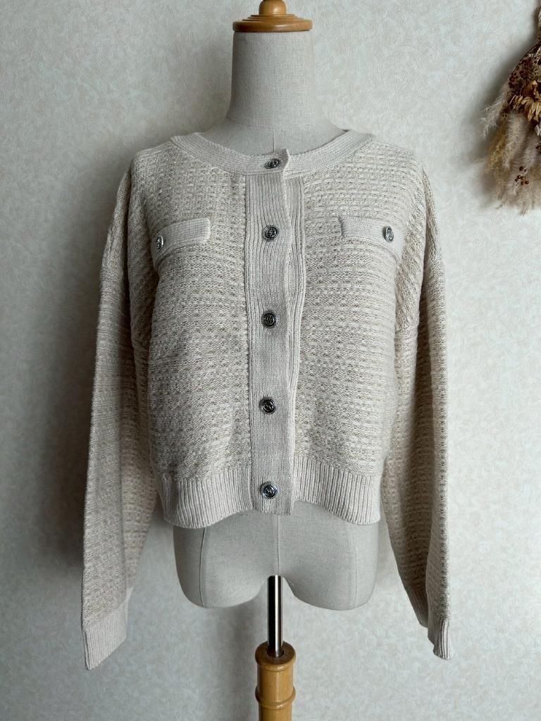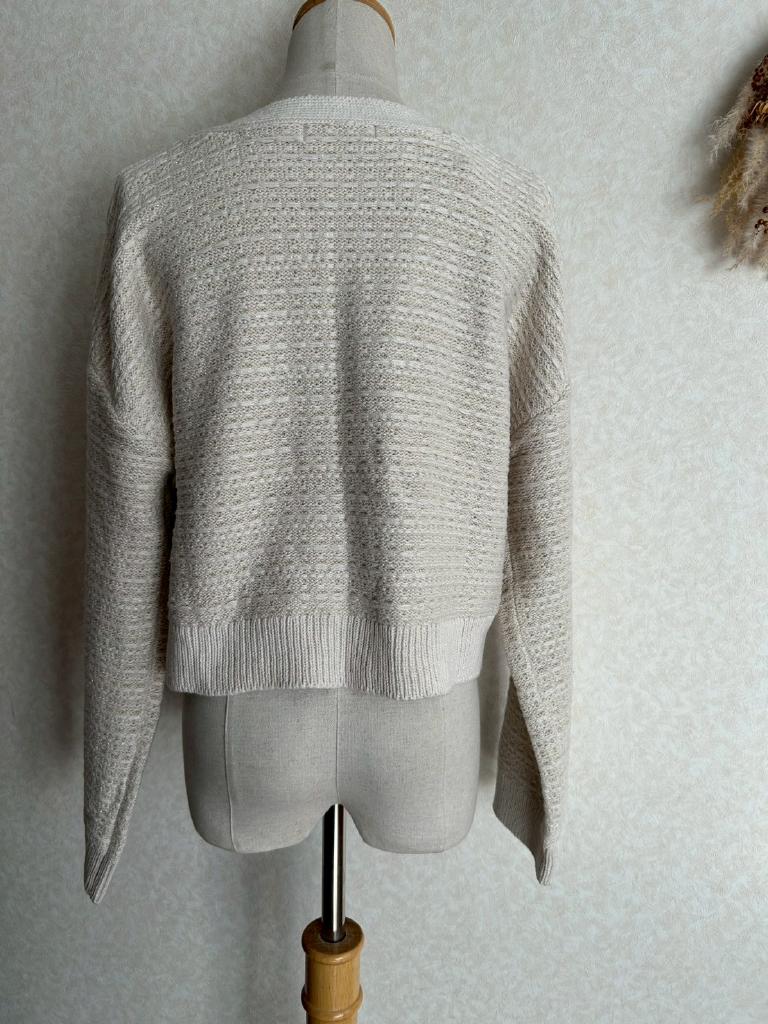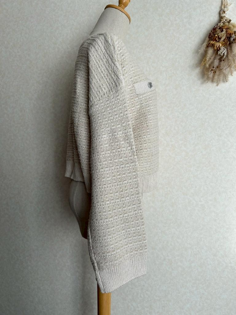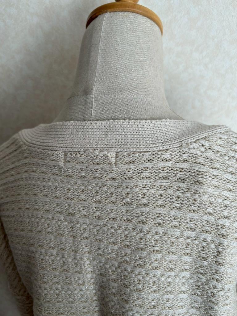 | コメント | 【実寸約cm】B106 着丈42 肩幅61 袖丈47.5 【サイズ】F 【素材%】コットン57% アクリル38% ポリエステル5% 【色】アイボリー 【アイテム】カーディガン 【ポケット】なし 【ボタン】あり 【状態・シミやホツレ等】なし 【着用感】新品未使用 【備考】飾りポケット付 |