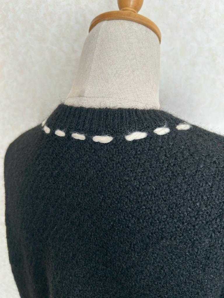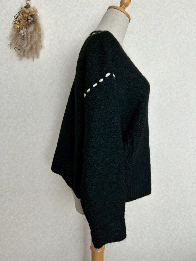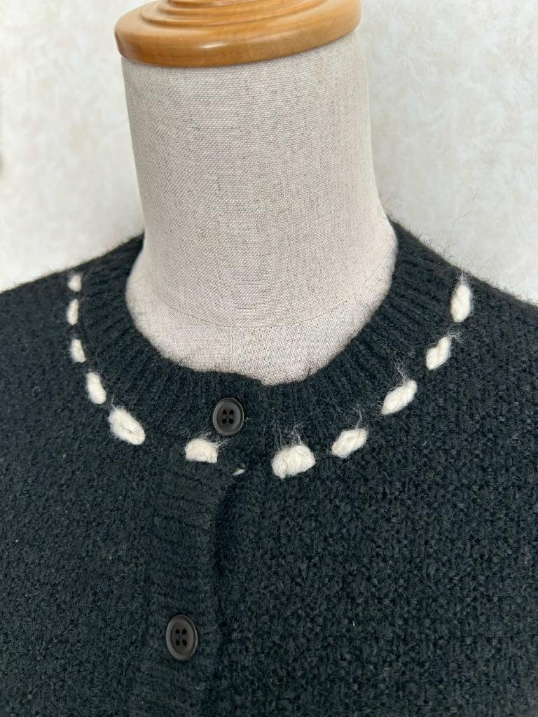 | コメント | 【実寸約cm】B116 着丈50 肩幅57 袖丈46 【サイズ】F 【素材%】ポリエステル67 ナイロン22 毛10 ポリウレタン1 【色】ブラック 【アイテム】ニットカーディガン 【ポケット】なし 【ボタン】あり 【状態・シミやホツレ等】特になし 【着用感】少 【備考】 |