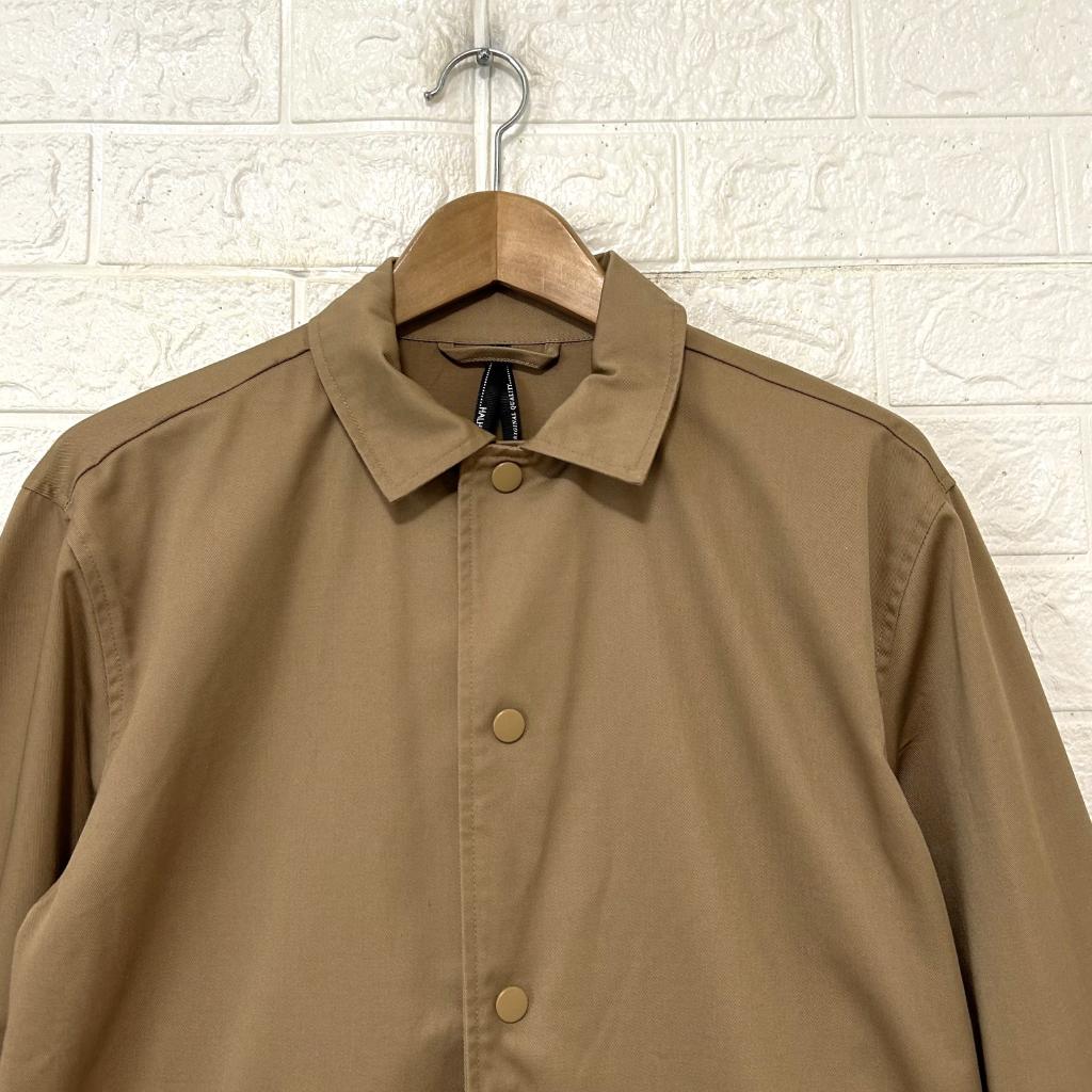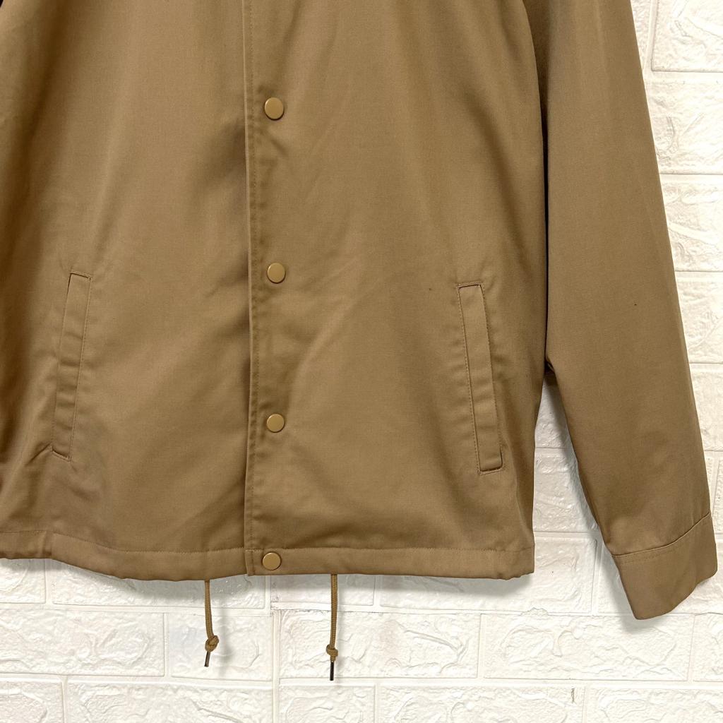 | コメント | 【ハルハム】 『メンズ コーチジャケット』 ◆[サイズ]=M(チェスト88-96/身長165-175) ◆[実寸(平置きcm)]=身幅54 肩幅47 袖丈61 着丈66 ◆[色]=濃いベージュ ◆[デザイン]=フロント開閉スナップボタン 裾絞り紐あり ◆[状態]=未使用のお品 ◆[材質]=6枚目画像参照 |