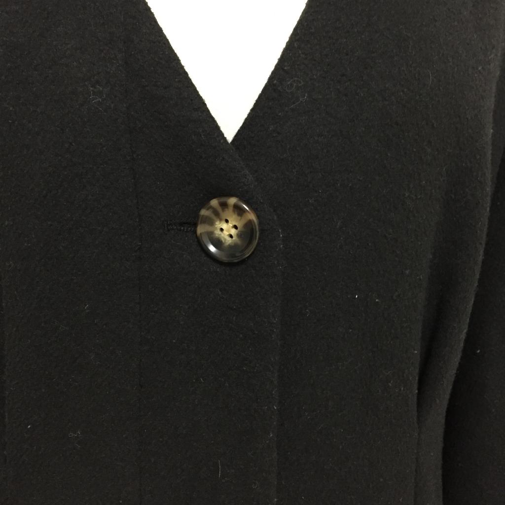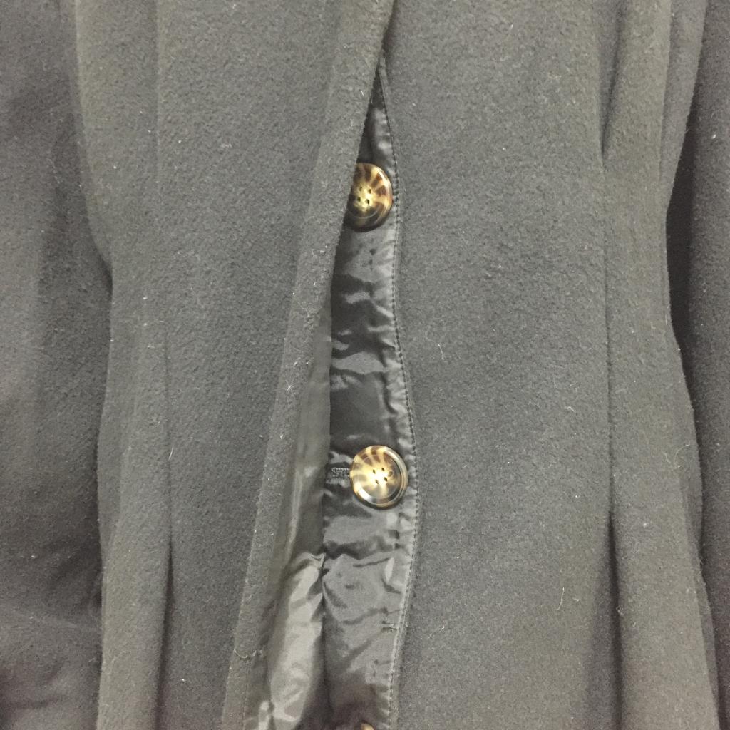 | コメント | ブランド名 ムルーア 商品名 コート 【記載サイズ】2 【実寸(CM)】胸囲100 着丈122 肩幅55 袖丈56 【素材(%)】表:ポリエステル81 毛18 ナイロン1 裏:ポリエステル100 【色・柄】黒 【デザイン・印象】ボタン 横ポケット2つ 後ろスリット 【状態】ベルトなし 少々毛羽立ちがありますが状態もよくきれいなお品です 手洗い不可 |