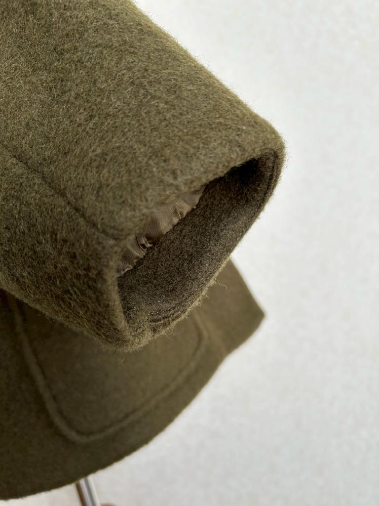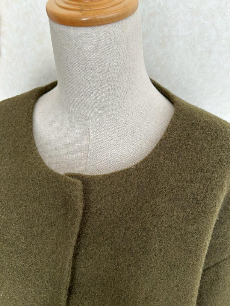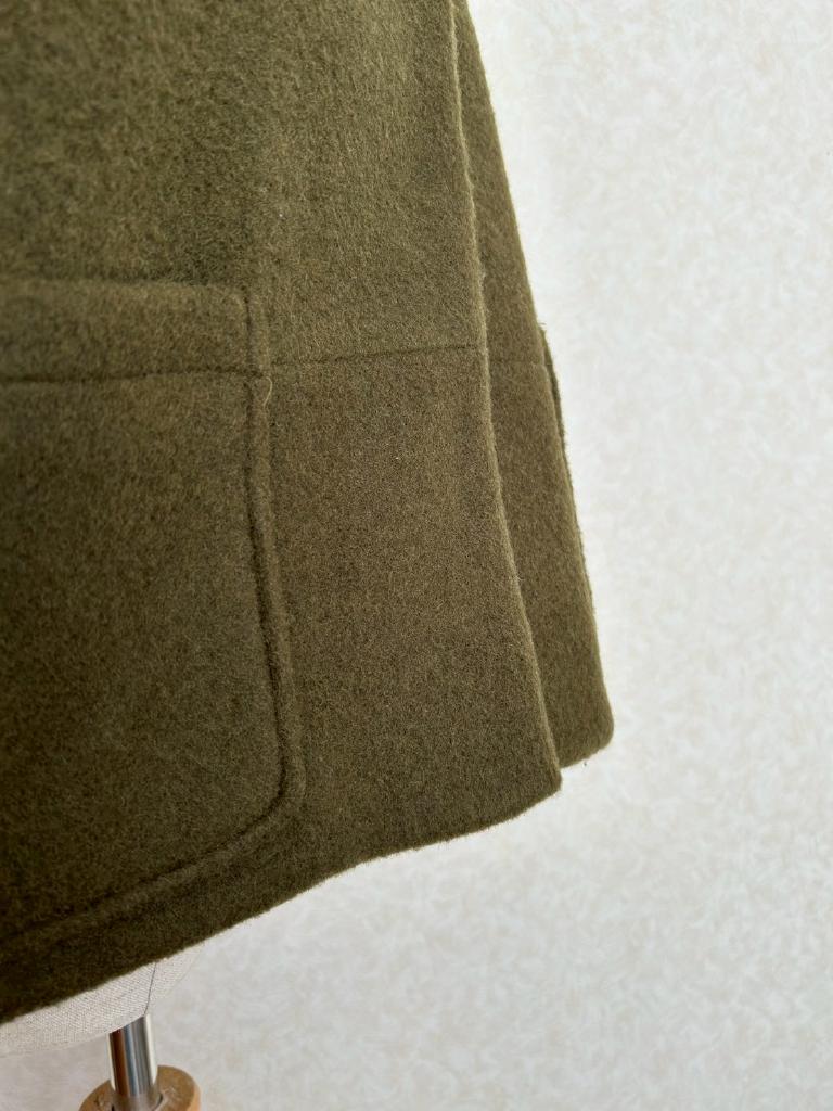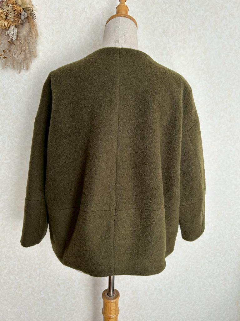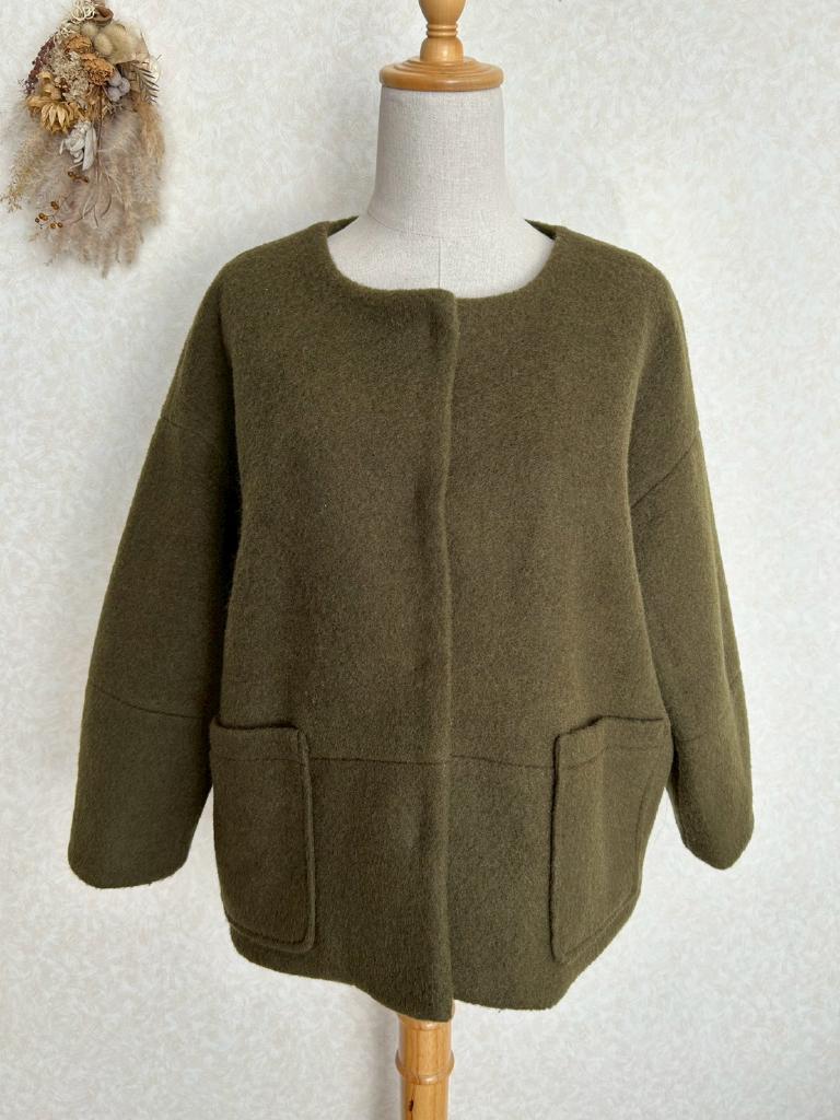 | コメント | 【実寸約cm】B108 着丈48 肩幅53 袖丈36 【サイズ】F 【素材%】毛50 ポリエステル50 【色】カーキ 【アイテム】コート 【ポケット】あり 【ボタン】あり 【状態・シミやホツレ等】特になし 【着用感】少 【備考】 |