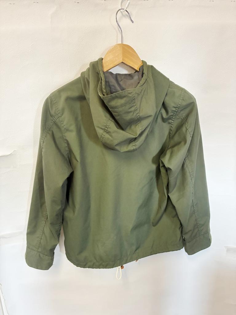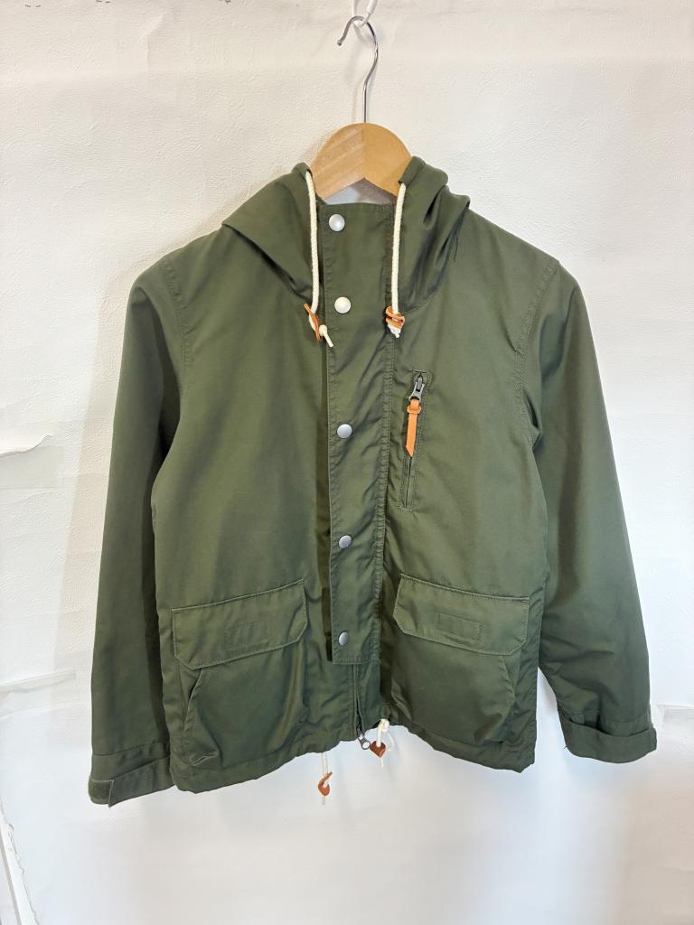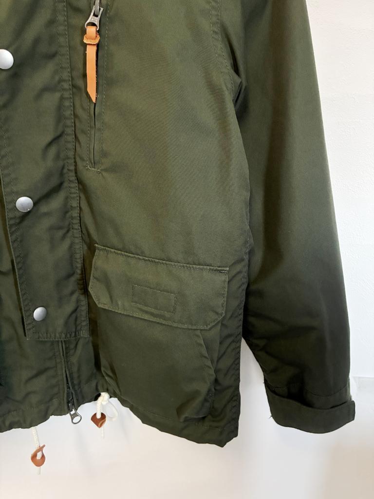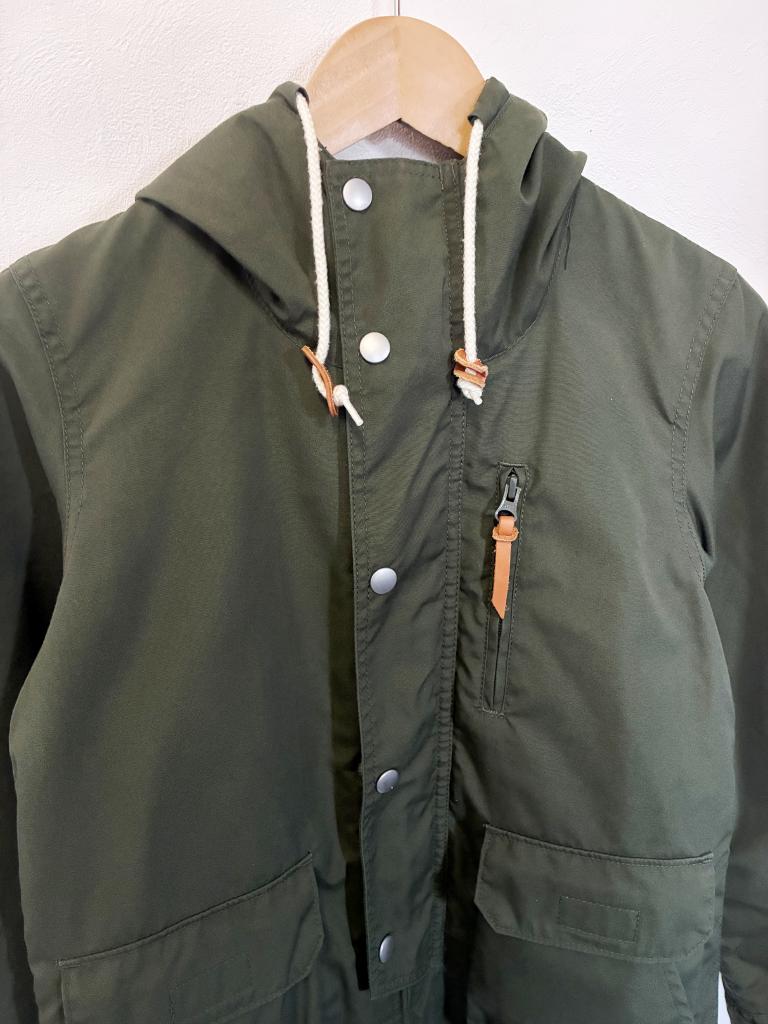 | コメント | 【評価】2 【サイズ】S 【実寸】バスト96 着丈61.5 袖丈57 肩幅68 【材質】ポリエステル65% 綿35%(裏地)ポリエステル100% 【状態】着用感…少々 フードファー・ライナー無し 【色・デザイン】カーキ 前開きスナップボタン×ファスナー 左胸元・前下左右ポケット 袖口マジックテープ フード・裾口絞りひもあり 【風合い】 ◎ 【生地の厚さ】 普通 【透け感】 なし |